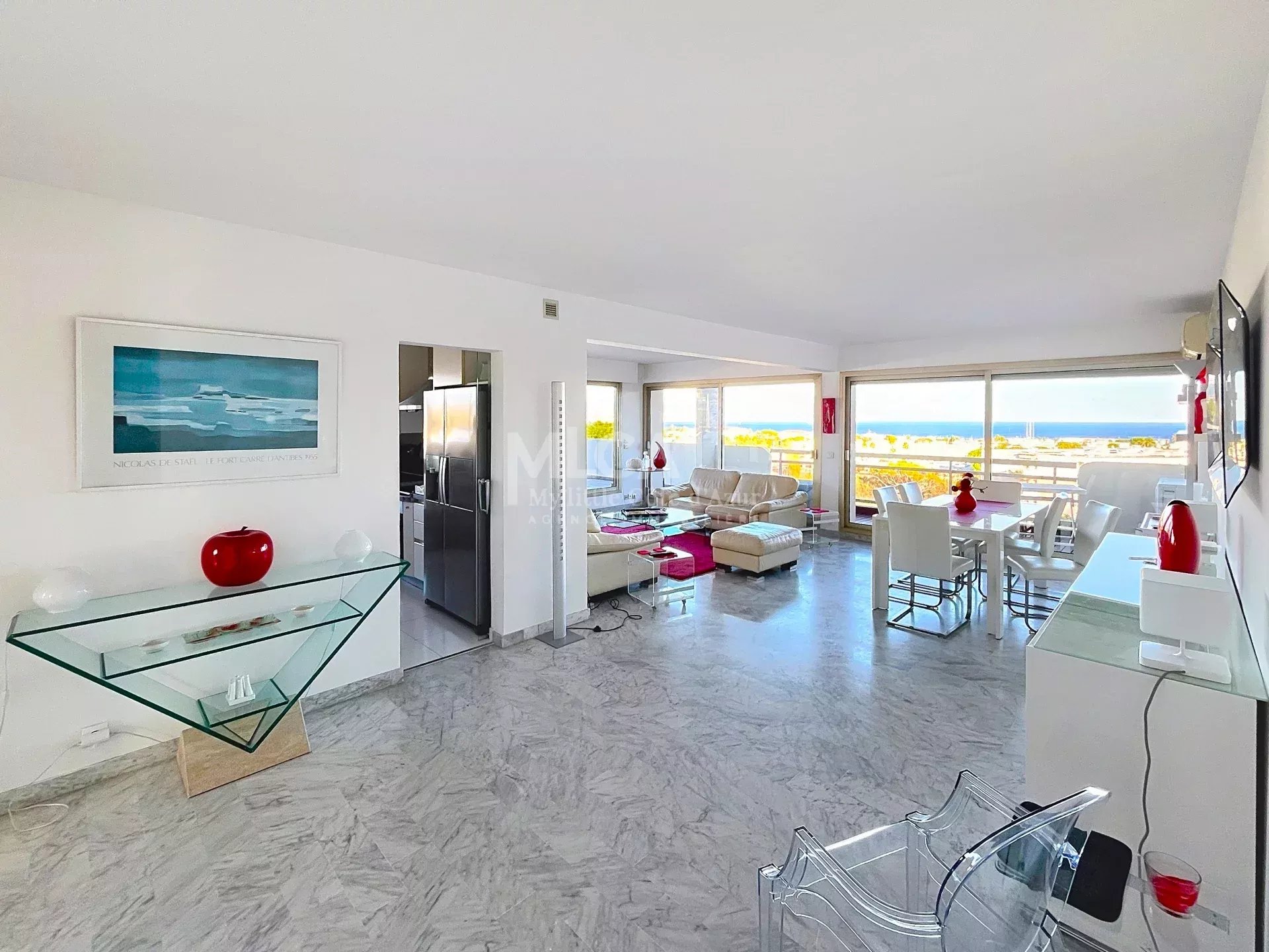 Dans une résidence de standing avec gardien, piscine et tennis, à pied de la gare et du centre-ville, découvrez cet appartement de 118 m² comprenant 4 chambres, bénéficiant d’une terrasse de 166 m² et d’une vue panoramique sur la mer, les montagnes et la baie de Nice. L’appartement se compose d’une entrée, d’un séjour / salle à manger lumineux, d’une cuisine indépendante, de quatre chambres, de deux salles de bains, de deux WC, ainsi que d’une vaste terrasse de 180 m², d’un garage, d’un parking et d’une cave. Résidence réputée pour sa qualité de vie, offrant un parc paysager, une piscine, deux terrains de tennis, et située à proximité du centre-ville d’Antibes. Une vue à couper le souffle et un cadre de vie privilégié.