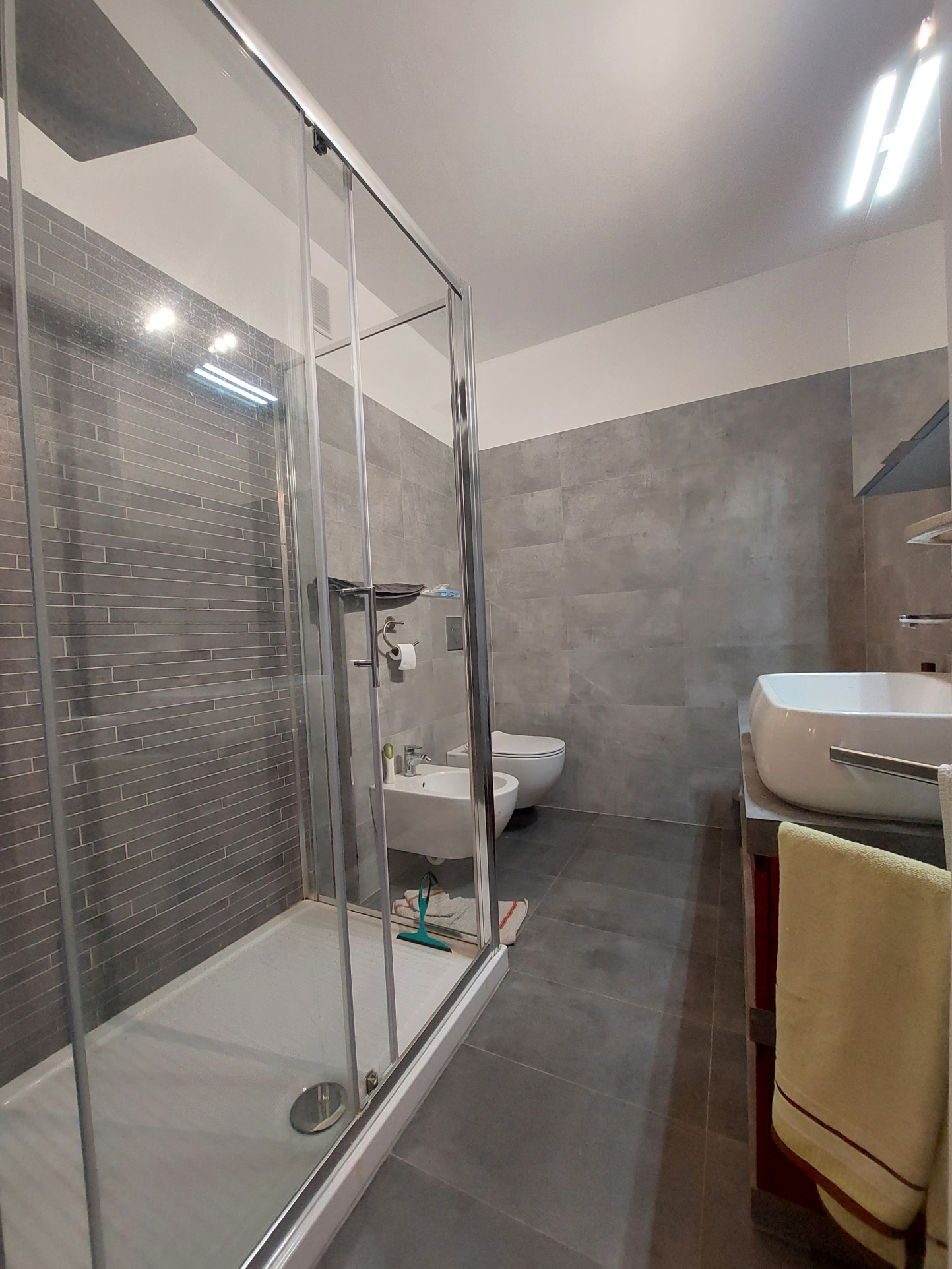 Une chambre séparée avec rangement et salle d'eau.