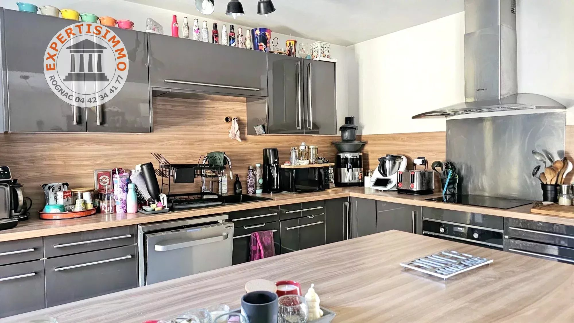 La cuisine équipée semi ouverte, parfaitement dimensionnée, permet d’allier praticité et potentiel d’ouverture selon vos envies.