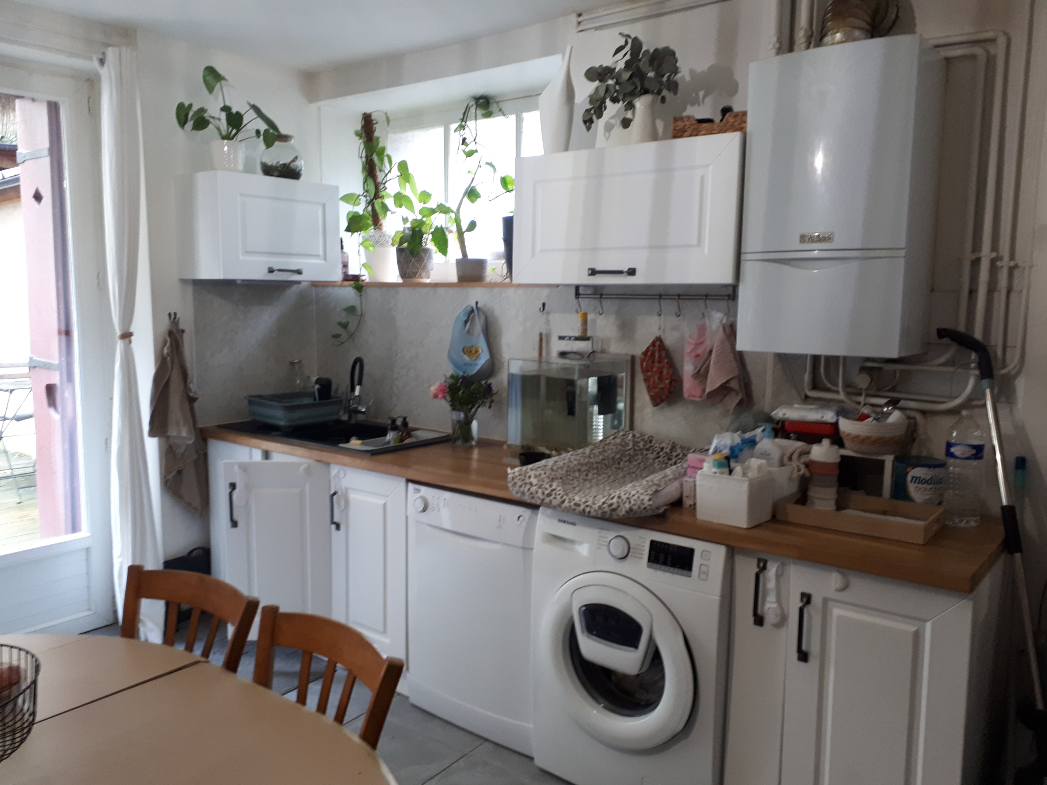 Au rez-de-chaussée, vous découvrirez un salon/séjour spacieux de 24 m2 baigné de lumière, parfait pour accueillir famille et amis. La cuisine équipée de 16 m2, fonctionnelle et conviviale, invite à partager des repas dans une atmosphère chaleureuse. Les toilettes indépendantes complètent ce niveau, tandis qu'une jolie cour/patio de 27 m2 apporte un espace extérieur intime pour se détendre ou profiter d'un repas en plein air. Une cave de 4 m2 avec un ancien four à pain à l'entrée, une courette de 10 m2 et un local à vélo/moto de 6 m2 accessible depuis la rue offrent un confort pratique au quotidien et de nombreuses solutions de rangement.
