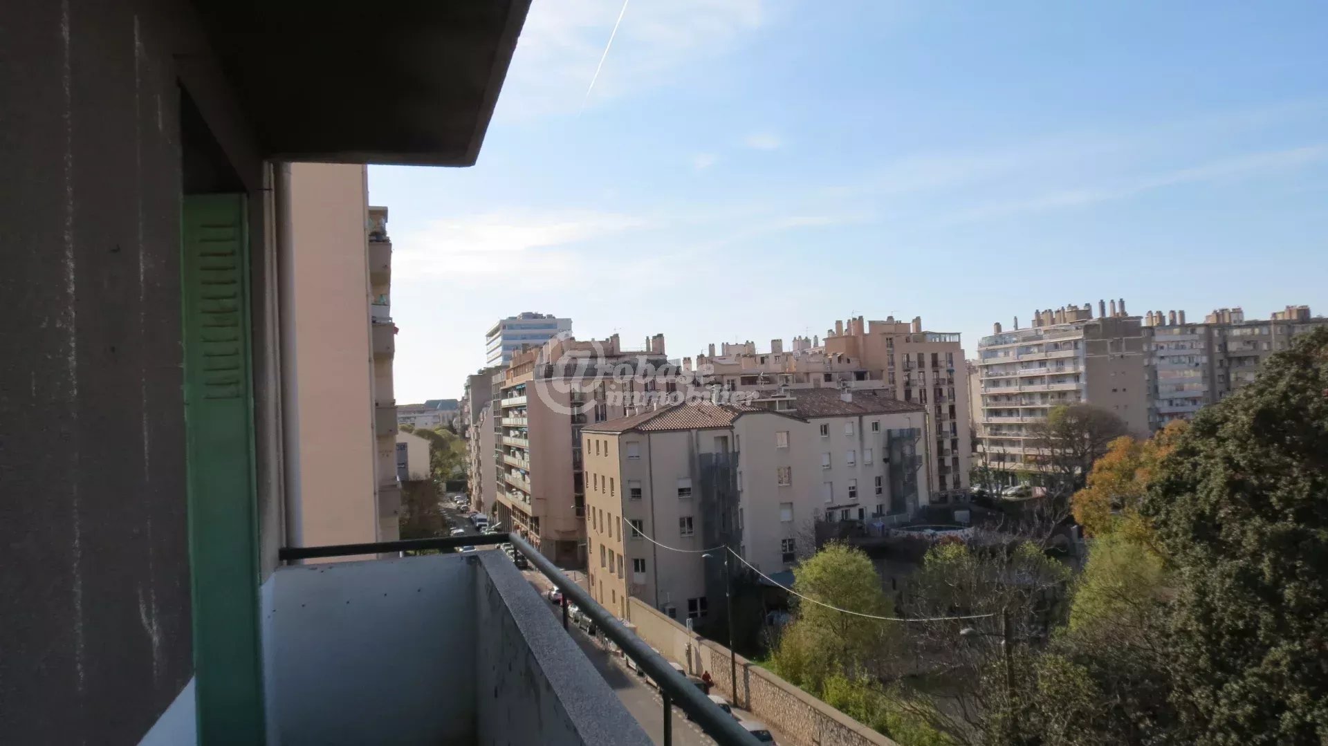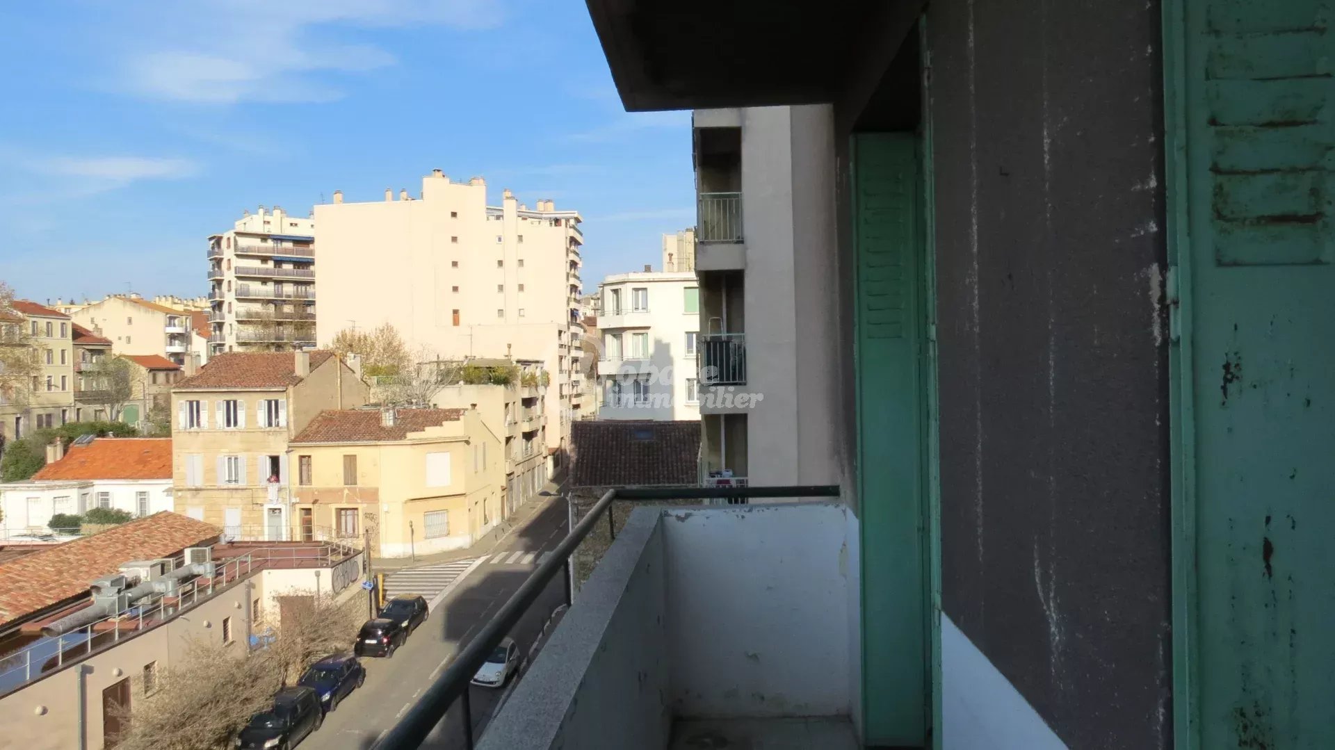 13004 Limite 13005, grand T2 au 4ème étage étage avec ascenseur dans un immeuble sécurisé. Composé d'un séjour avec cuisine américaine ouvert sur un balcon avec une jolie vue dégagée, d'une chambre, d'une salle d'eau et d'un wc séparé. Proche des deux lignes de tramway T1 et T2 du métro Blancarde, au calme, rafraichissement à prévoir. Contact Ariane Arditti 0619031183, agent commercial siret 432368546