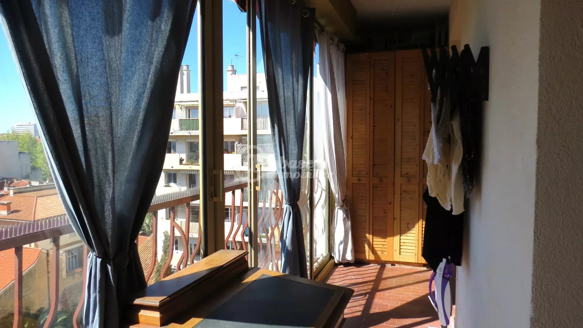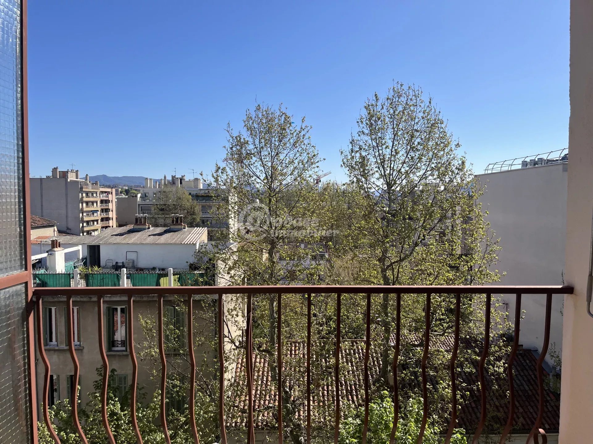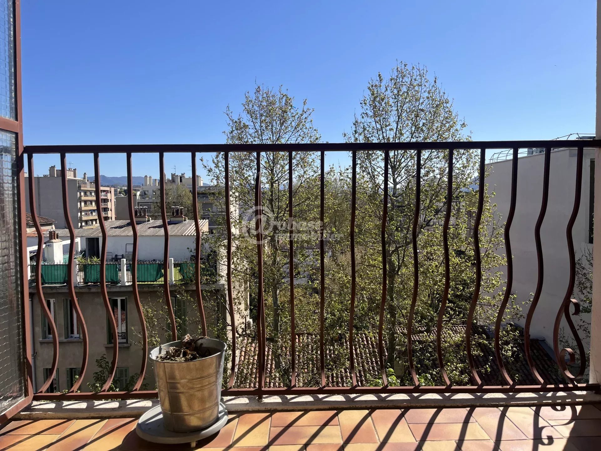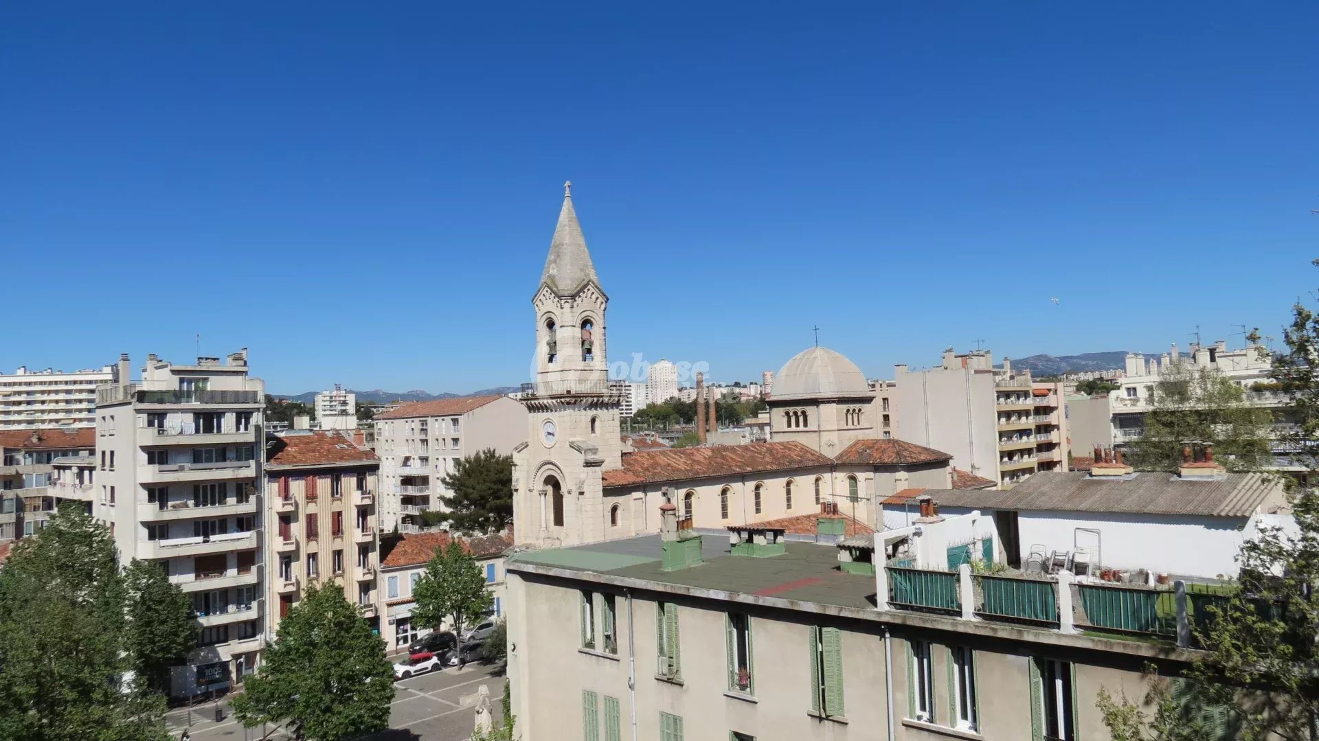 13005, St Pierre, En étage élevé dans un bel immeuble de standing, grand appartement de type 2 bien agencé, traversant, avec un balcon de chaque coté. Très calme, parking en sous sol. Prévoir modernisation. Contact Ariane Arditti 0619031183, agent commercial siret 432368546