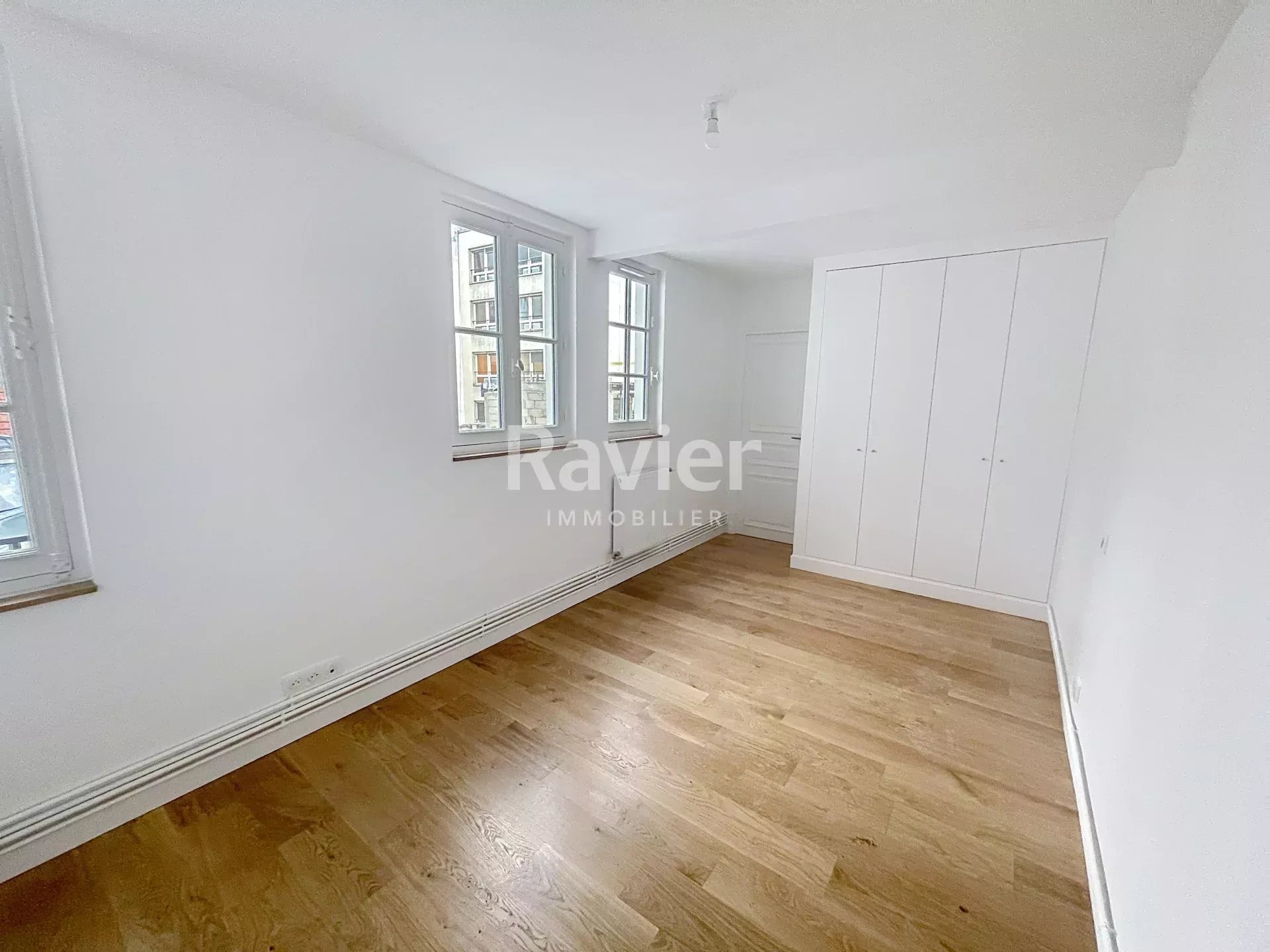 Au 3ème étage avec ascenseur, un appartement comprenant un séjour, une chambre avec salle de bains et wc, une cuisine, un wc séparé et au fond de l’appartement une petite chambre, un bureau.