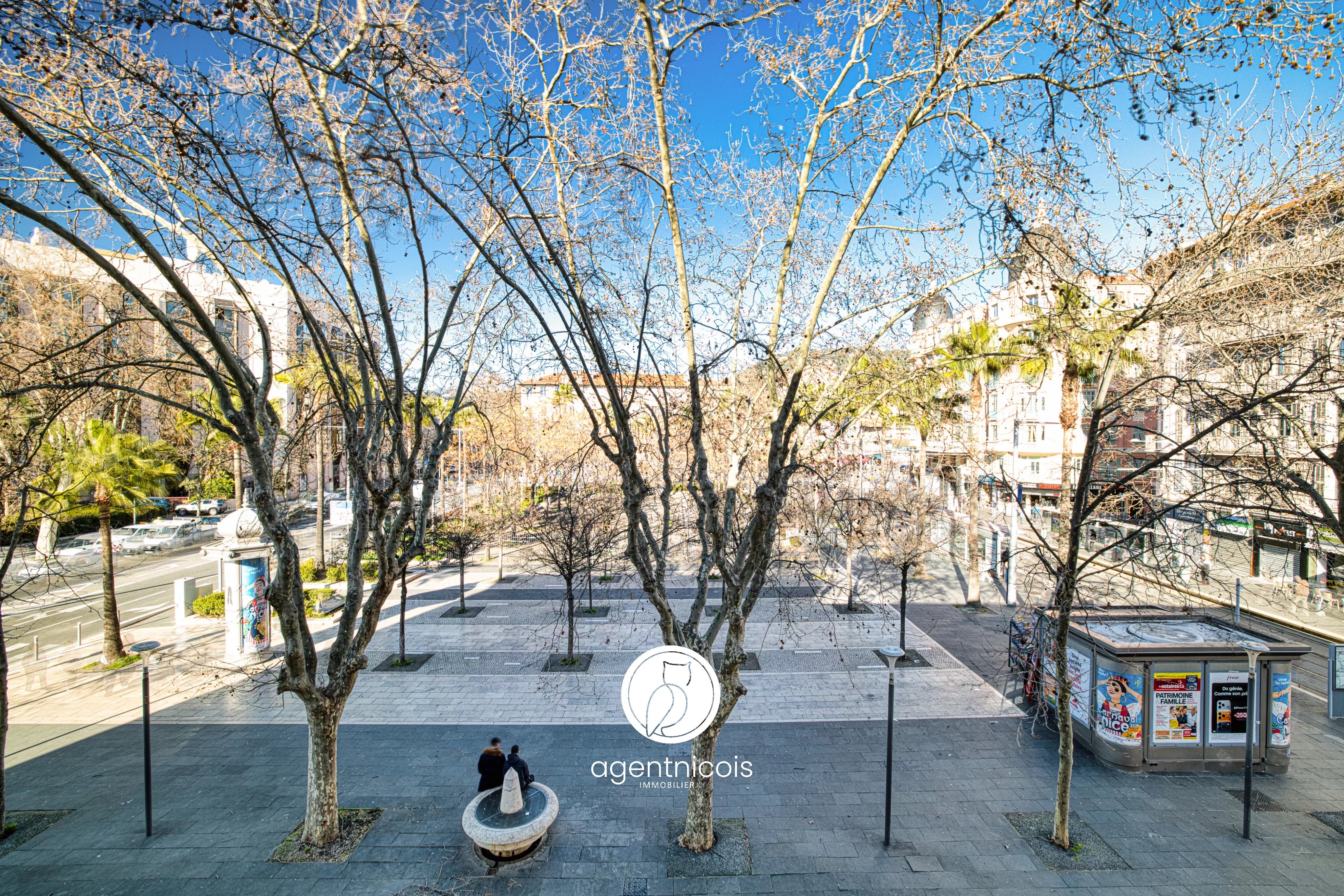 Entrée avec placard, dégagement, deux chambres sur cours au calme complet, un bureau ouvrant sur balcon, une cuisine indépendante donnant sur une loggia, une salle de bain et un séjour lumineux disposant d’une vue dégagée sur la Place.