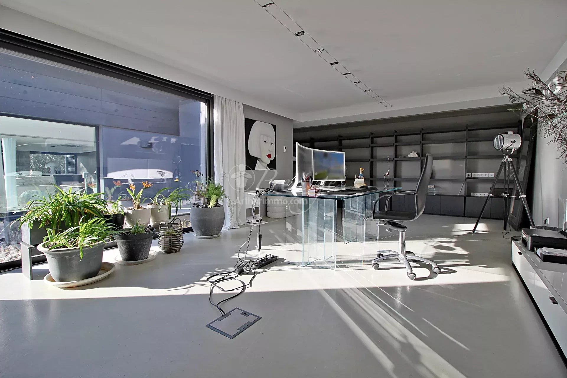 - Ses immenses baies à galandage et ses menuiseries en triple-vitrage avec stores verticaux, et brise-soleil orientables (BSO).