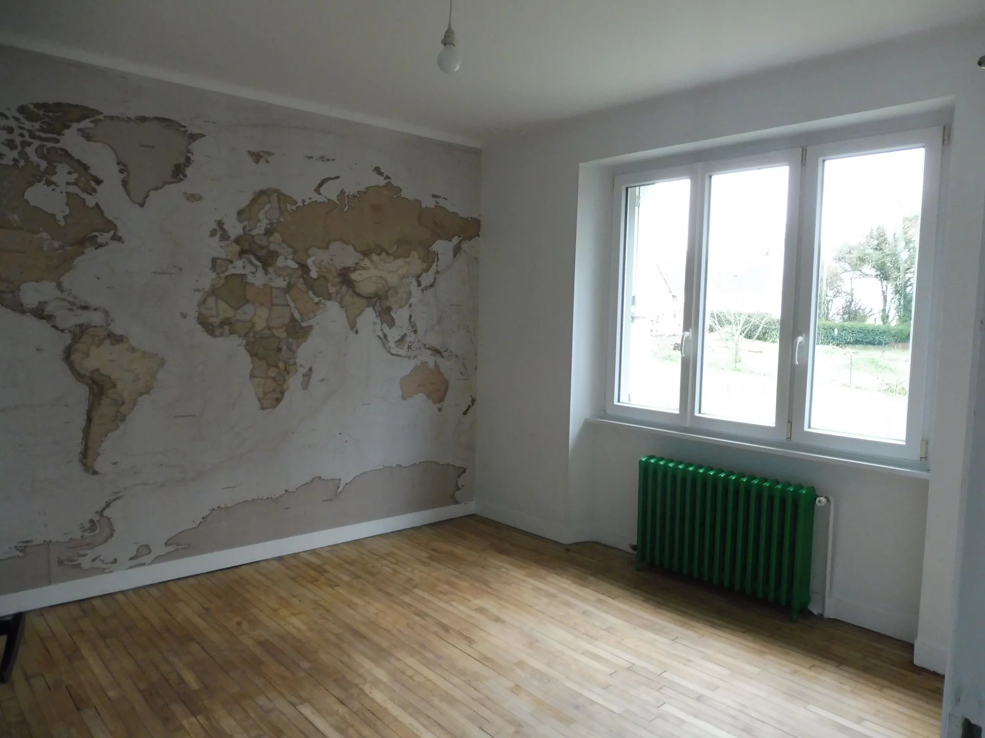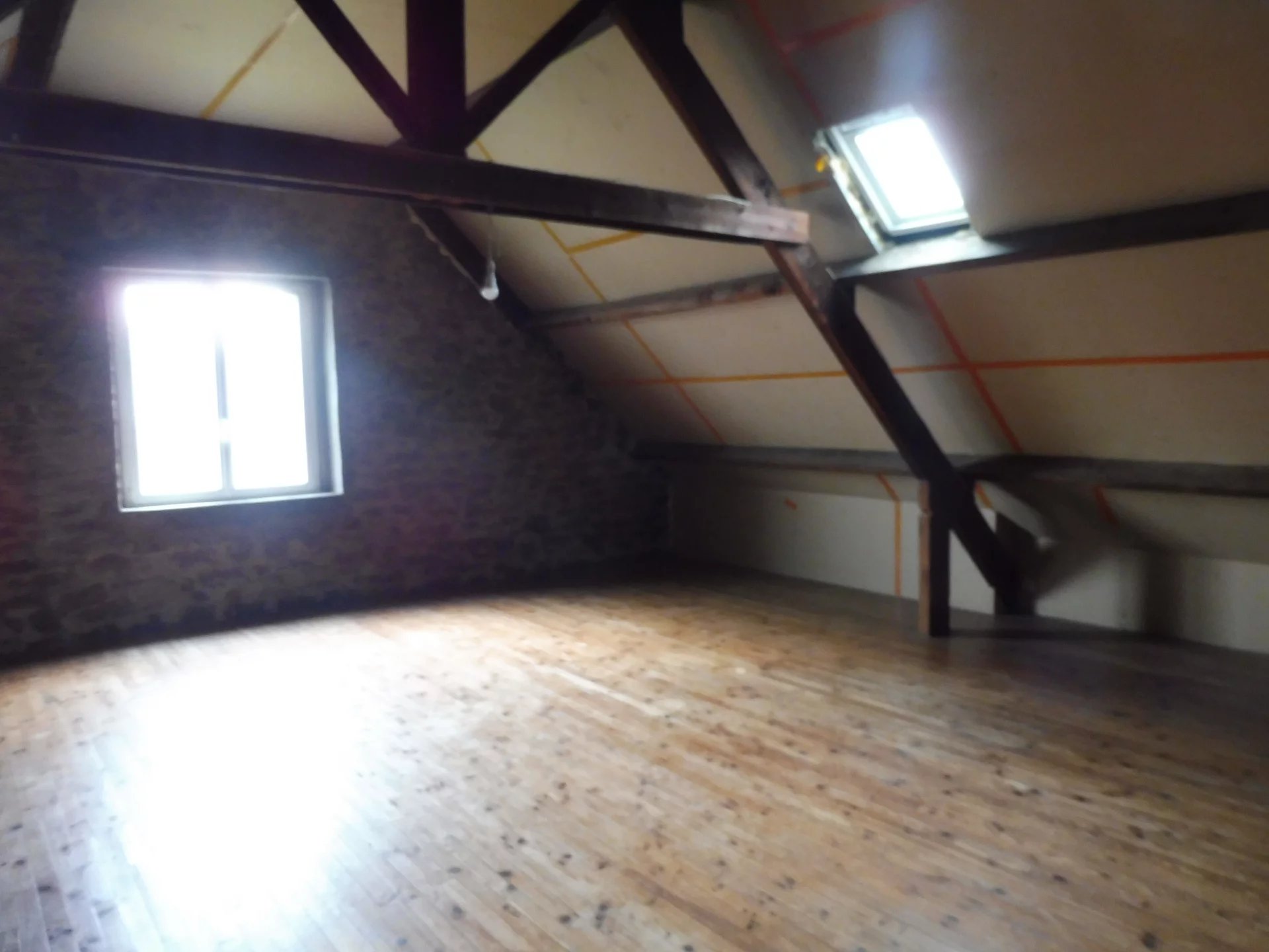 Maison comprenant : RDC : entrée, une pièce. 1er étage : pièce de vie avec cuisine aménagée, trois chambres, salle d'eau, wc. 2e étage : grande pièce isolée. Divers : grand jardin, chauffage gaz de ville, garage. Disponible de suite