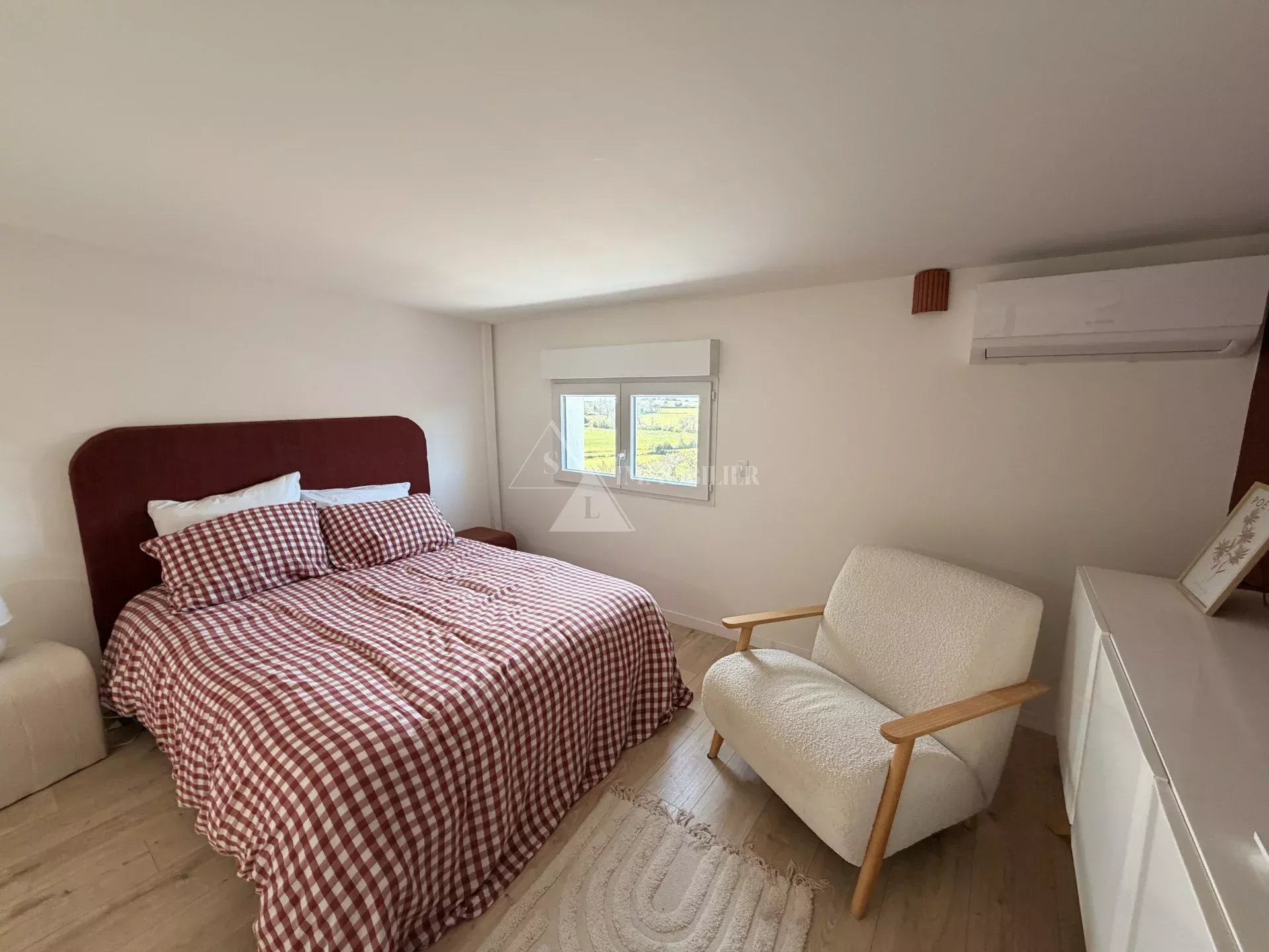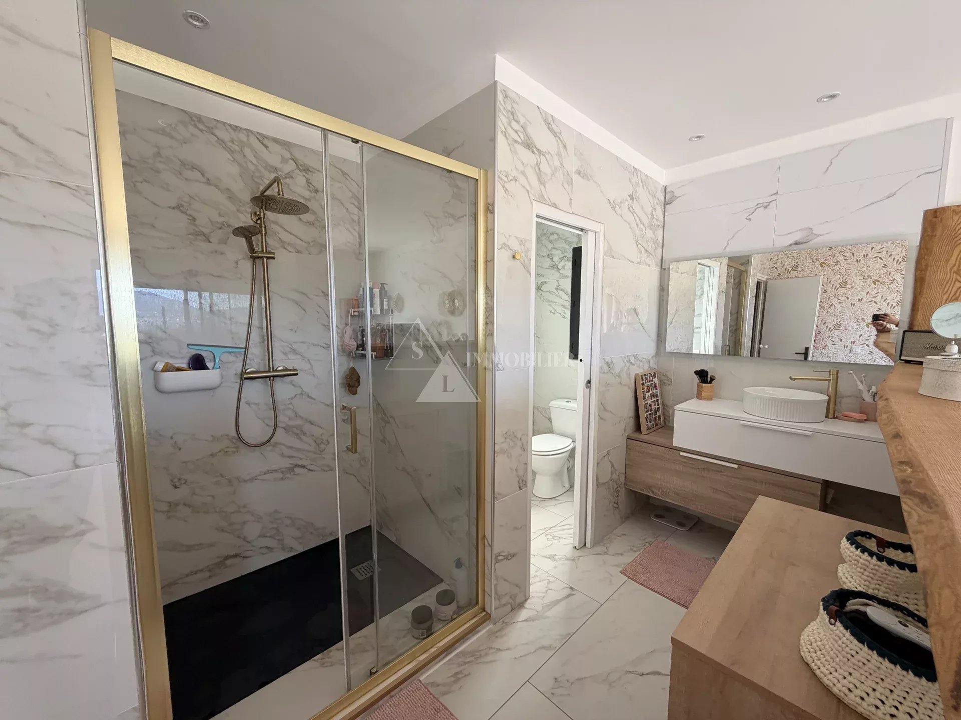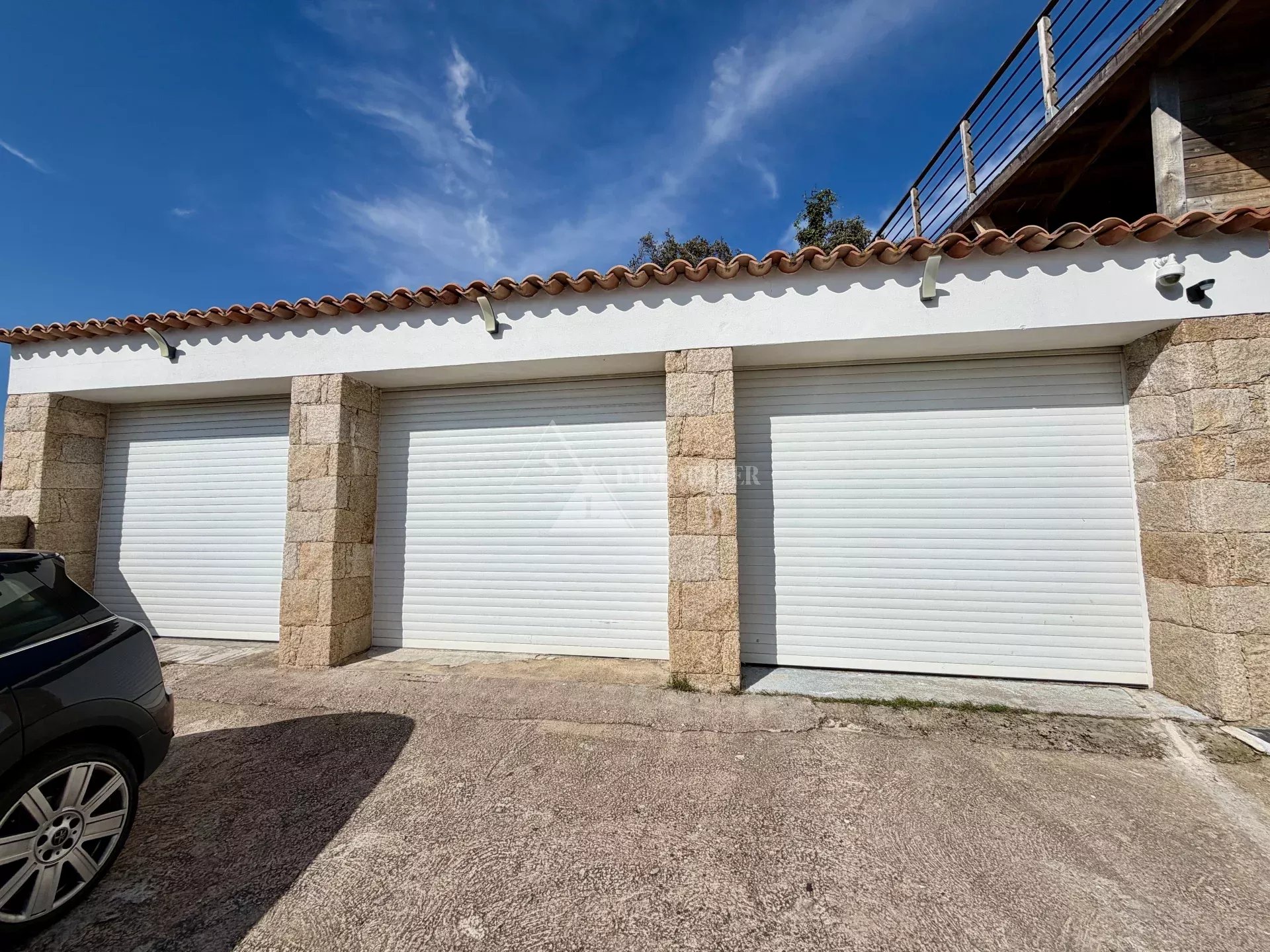 Côté commodités, la villa dispose d’un double garage et d’un garage simple, ainsi que d’équipements modernes tels que des panneaux solaires et des réserves d’eau pour l’arrosage du jardin en été.