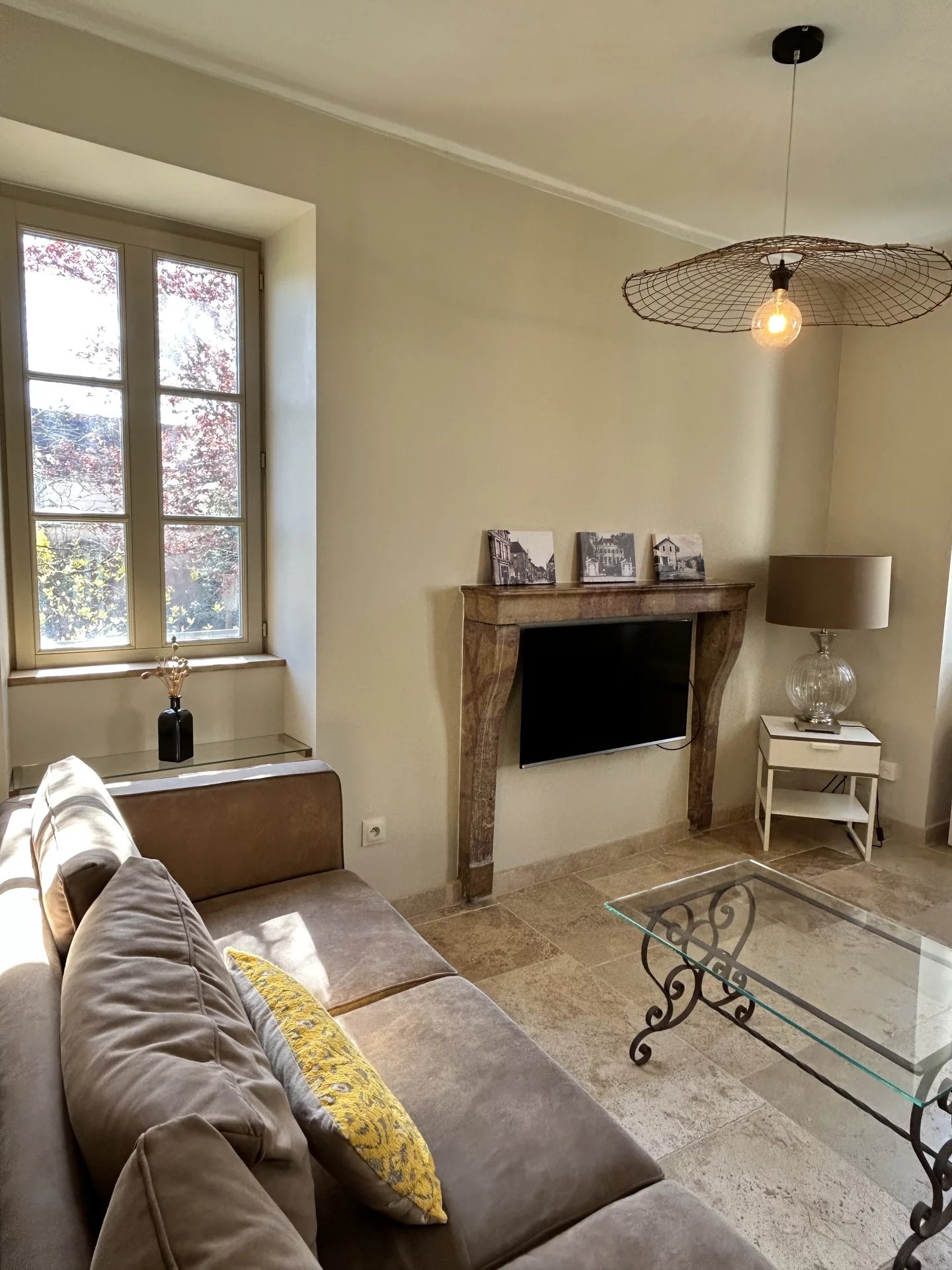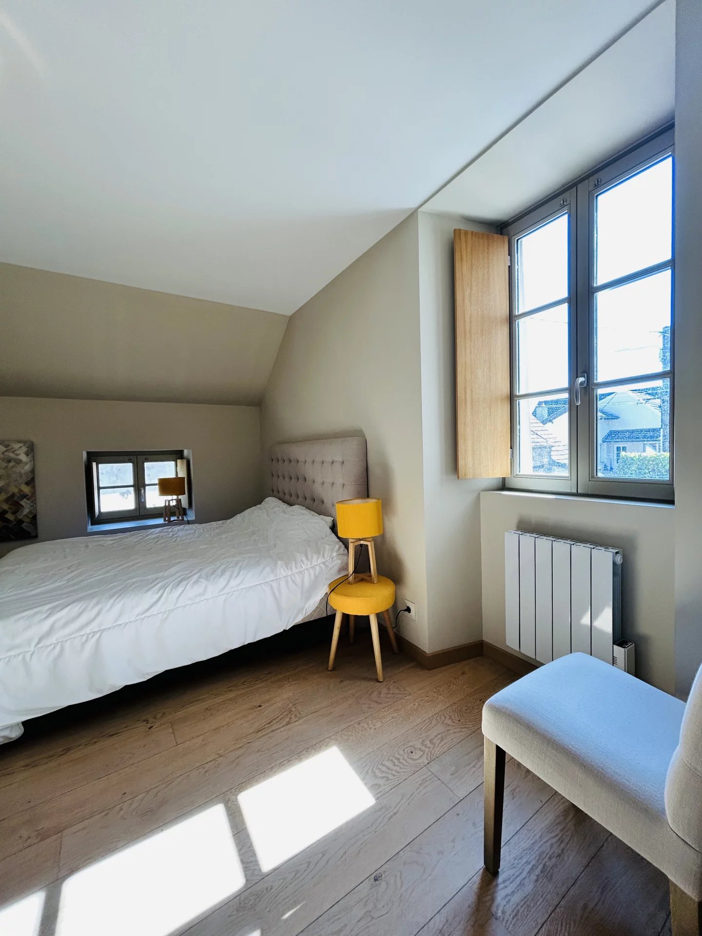 Belle bâtisse en pierre avec jardin clos, garage et cave, située au cœur d’un village de renommée mondiale.