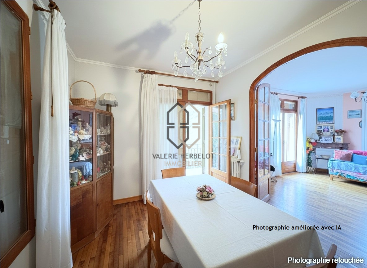 Maison des années trentes de 140 m2 au coeur d'un beau jardin de 588 m2, solide construction avec sous-sol total avec le charme de l'ancien, elle dispose au rez de chausée d'un double séjour triple exposition avec parquet et chéminée, une cuisine séparée, une salle de bain et wc. Au premier étage 2 grandes chambre, et une plus petite 8.5m2 actuellement bureau, un dressing et une salle de bain, au second 2 chambres mansardées, une salle d'eau avec wc et un grenier pour le rangement. Maison bien entretenue et très saine, à rénover selon votre gout, beau potentiel.