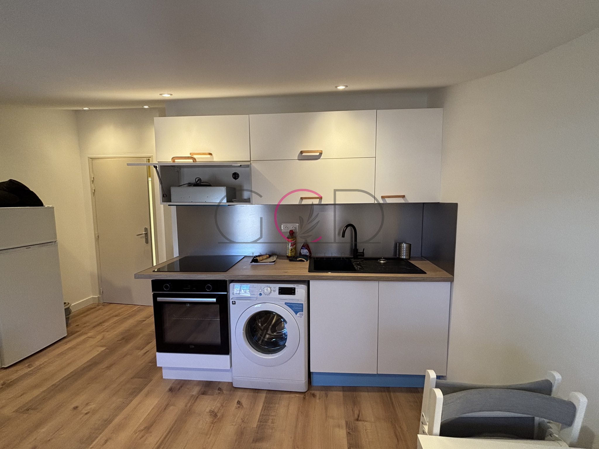 GCD IMMOBILIER vous propose en exclusivité à la location à Aix-en-Provence, centre-ville historique (Rue Beddarides), un studio meublé de 17.08 m2 situé au 4ème et dernier étage d'un immeuble. Il se compose d'une pièce de vie avec une cuisine américaine aménagée et équipée (plaque de cuisson, hotte aspirante, four, frigo et machine à laver) et d'une salle d'eau avec WC - Double vitrage - Volet roulant automatique - Entièrement rénové et mobilier neuf.