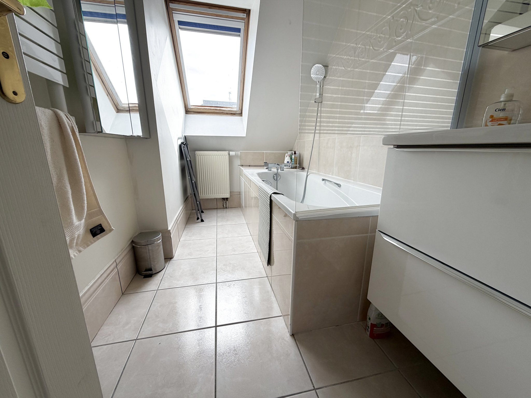 Au rez-de-chaussée, vous trouverez une entrée accueillante menant à un lumineux salon/séjour, ainsi qu'une cuisine aménagée et entièrement équipée. Un WC avec lave-mains complète ce niveau.