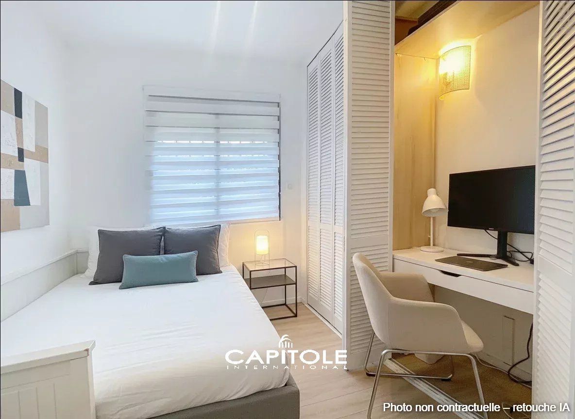À l’étage, une mezzanine aménagée en espace bureau, deux chambres confortables et une salle de bains avec WC offrent un espace nuit intimiste et harmonieux.