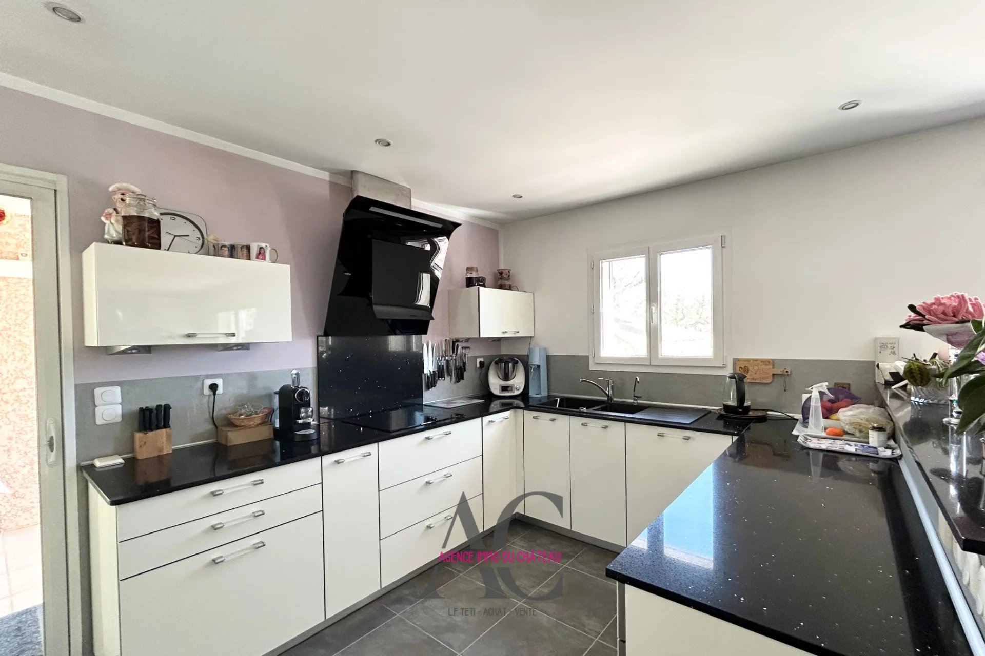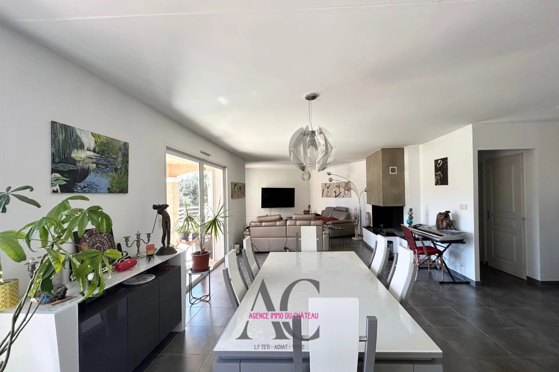 Implantée sur un magnifique terrain d’environ 5 000 m², la propriété développe près de 150 m² habitables aux volumes généreux et baignés de lumière. Dès l’entrée, vous découvrirez une vaste pièce de vie d’environ 60 m², où s’harmonisent un salon chaleureux, un espace repas convivial et une cuisine sur mesure entièrement équipée, ouverte sur une grande terrasse en partie couverte.