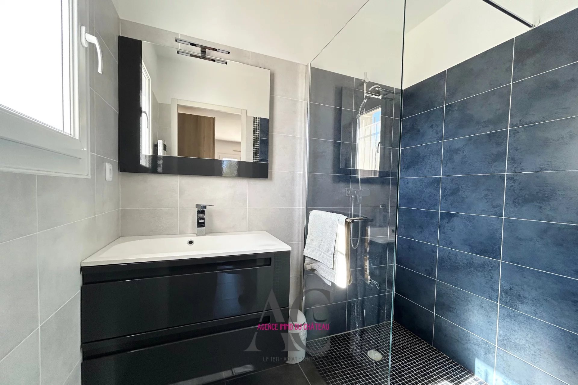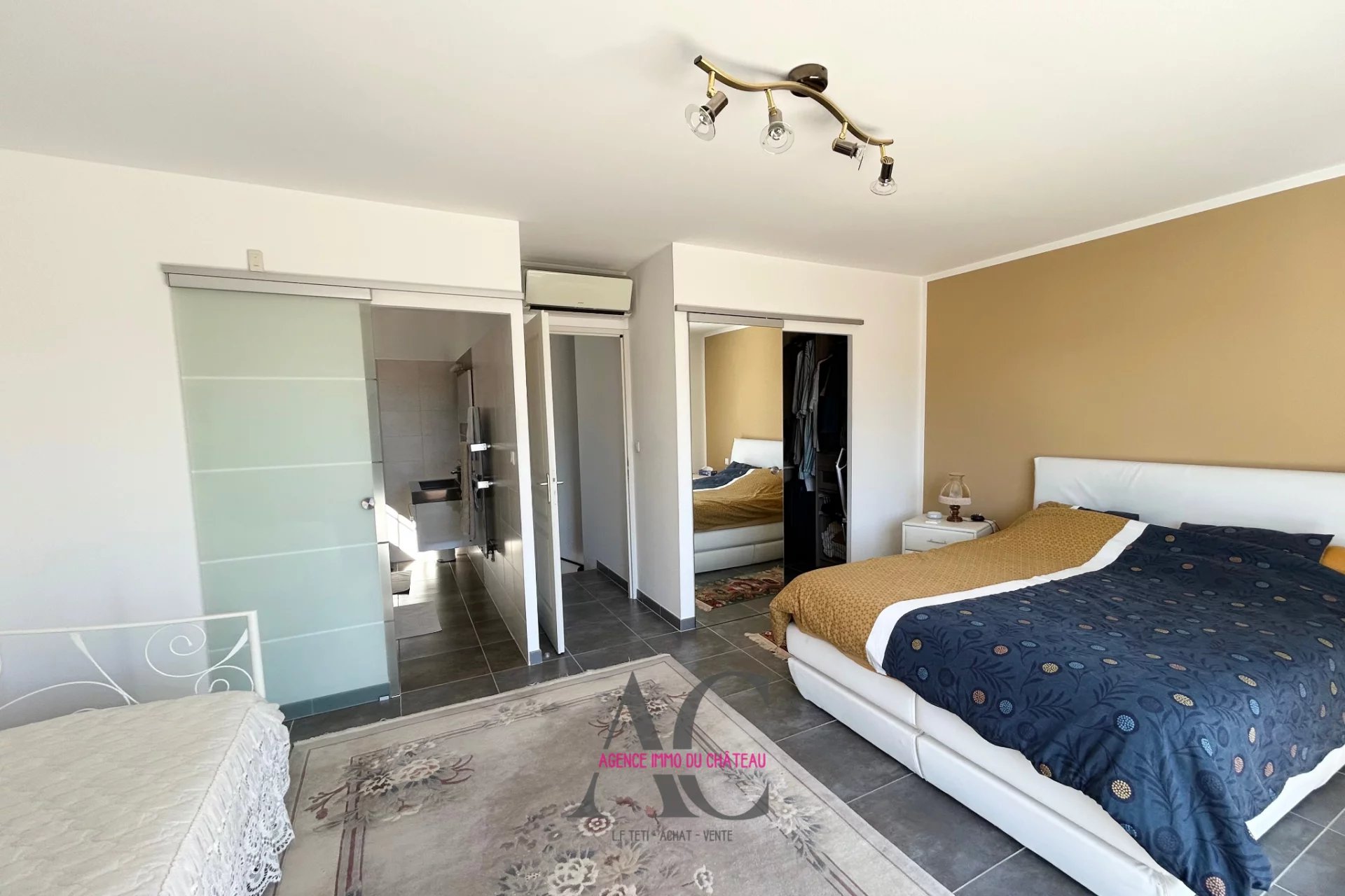 De plain-pied, deux chambres disposent chacune de leur salle d’eau privative, accompagnées d’un bureau et d’une buanderie fonctionnelle attenante à la cuisine. À l’étage, une grande suite parentale d’environ 35 m² offre un véritable espace intime avec dressing, salle de bain et accès à un solarium privatif bénéficiant d’une vue panoramique exceptionnelle.