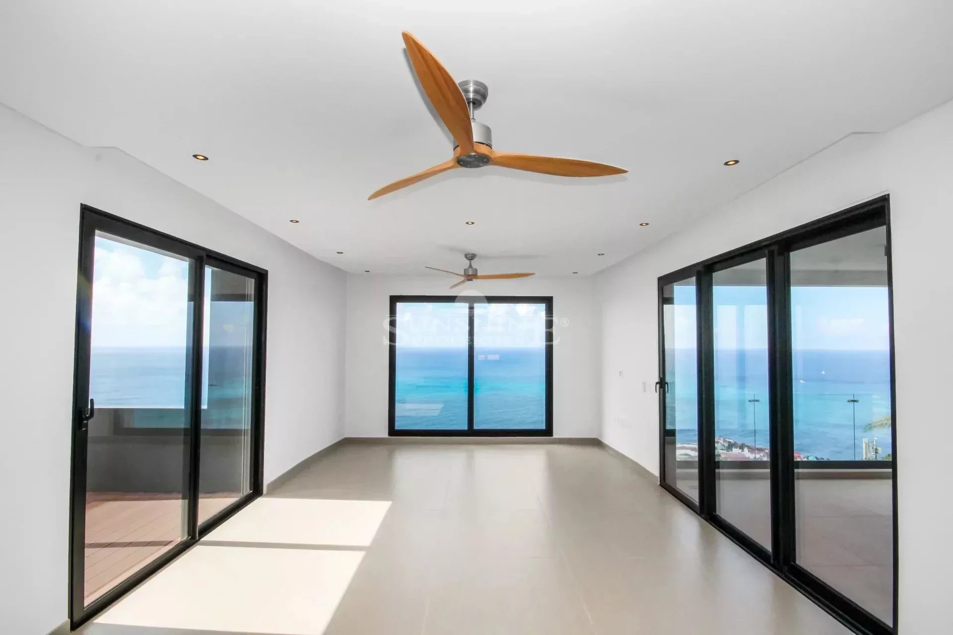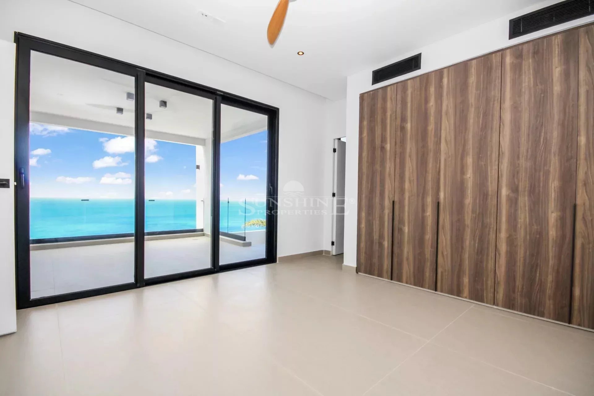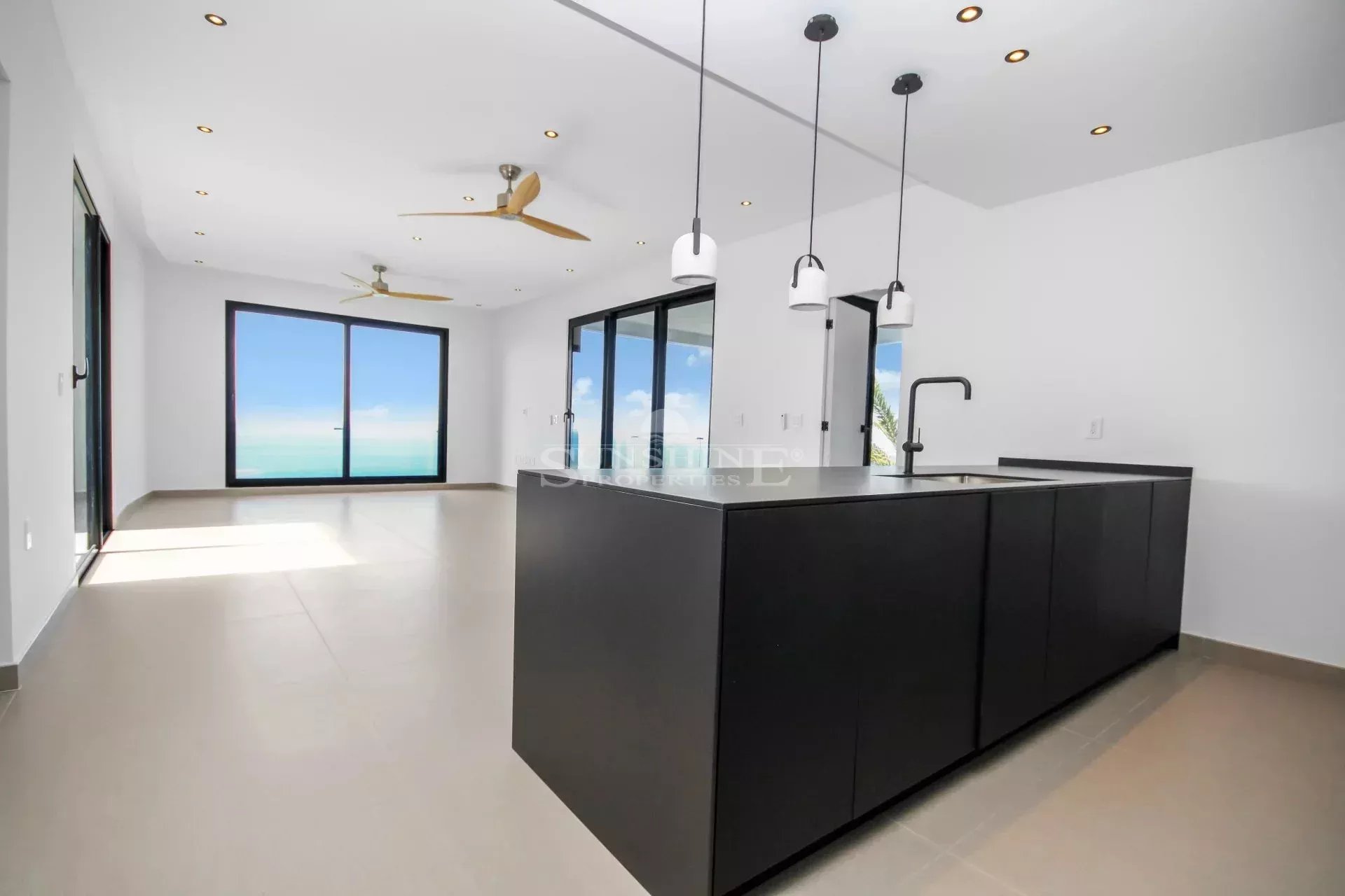 Due to the large sliding windows in front and the sides, the ocean views are more than stunning. The livingroom is also connected to one of the bedrooms with its ensuite bathroom.