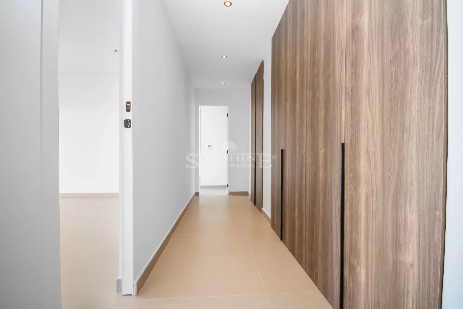 The lower floor provides access to the master bedroom and the third bedroom. Both with their own ensuite bathrooms. The master bedroom is equipped with a walk-in closet and the third bedroom with a build in closet.