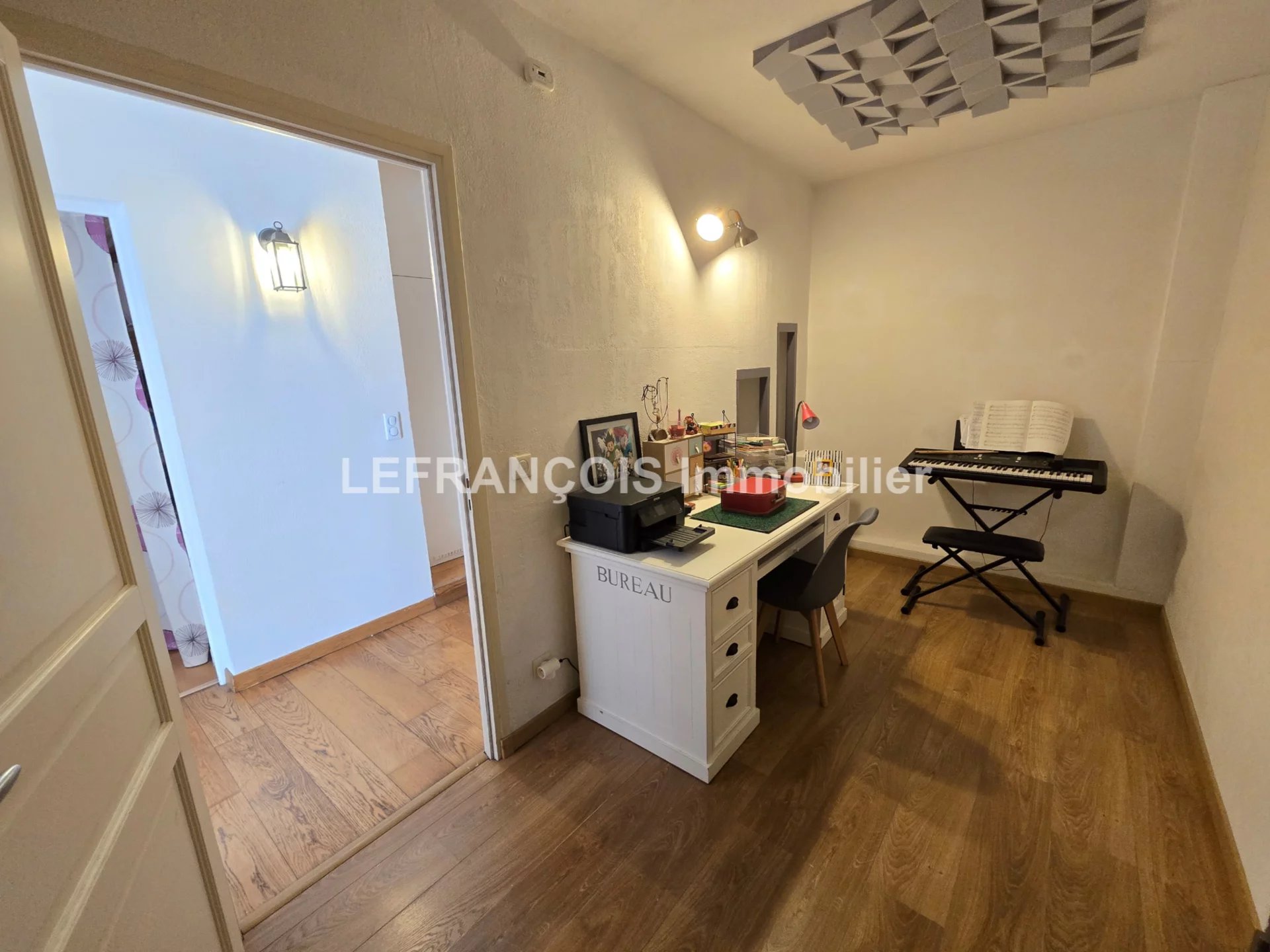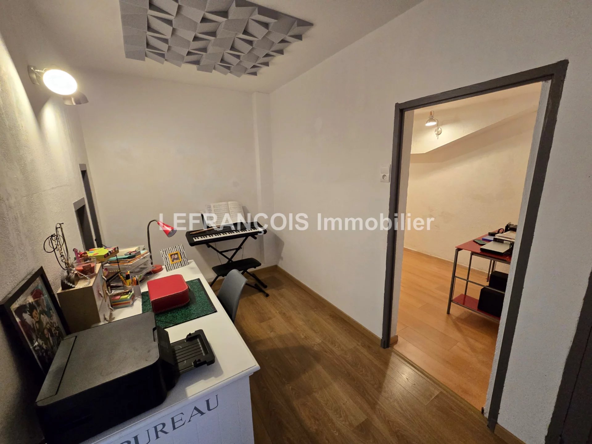 Le rez de chaussée distribue 3 chambres dont une de plus de 18m2, un double bureau, une salle d'eau avec WC