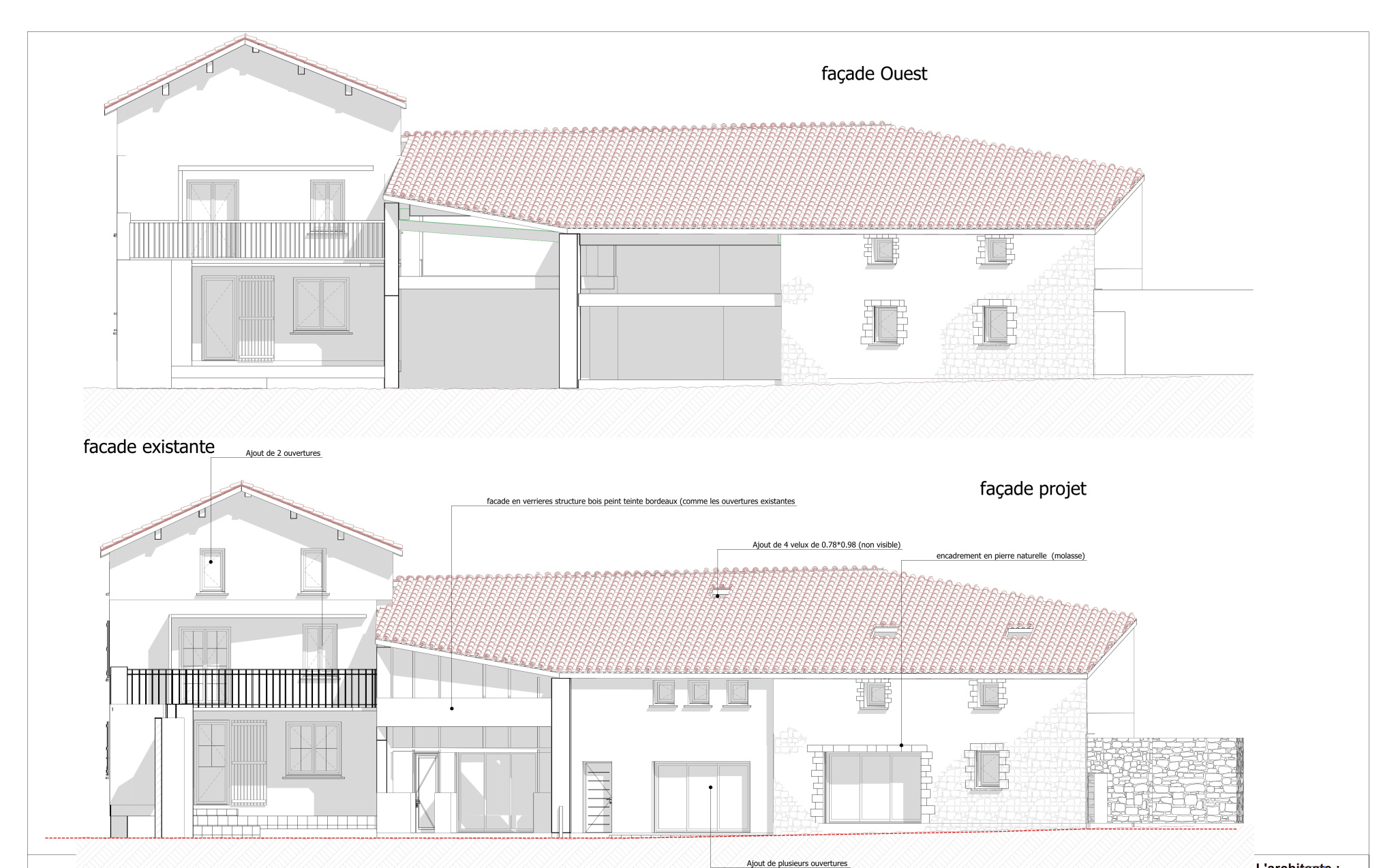 L'aménagement intérieur reste libre, mais nous avons travaillé avec l'architecte pour vous proposer une jolie pièce de vie avec cellier et toilettes au rez de chaussée, 2 chambres et salle de bains avec toilettes à l'étage.