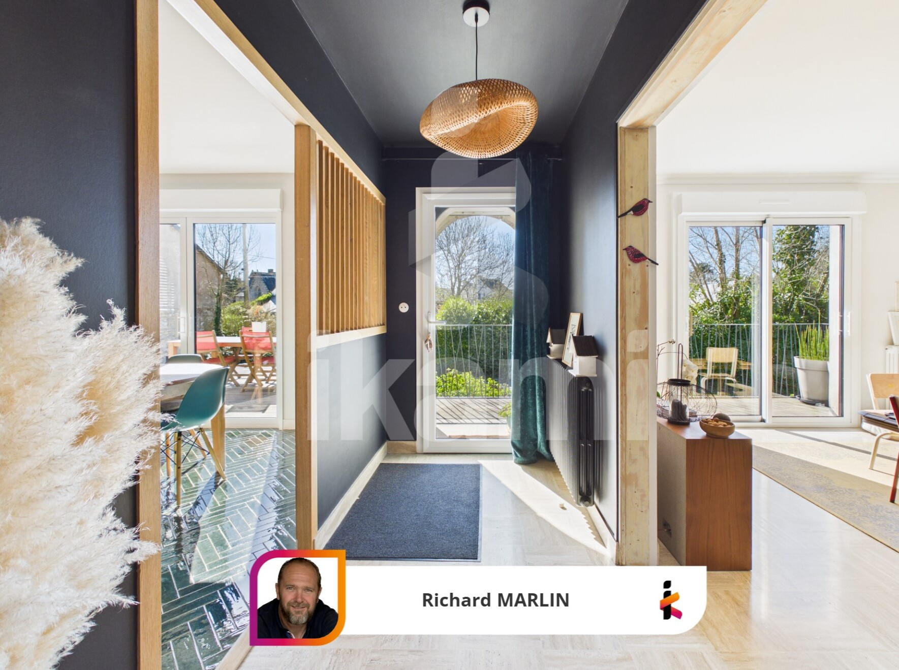 Cette maison néo-bretonne, rénovée avec goût, mêle harmonieusement le charme des matériaux d'origine et un confort moderne soigneusement pensé.