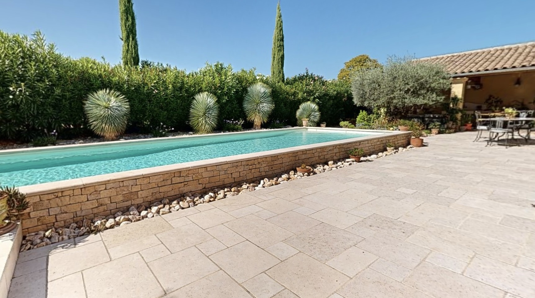 Idéalement située à quelques minutes à pieds du centre d' Uzes, magnifique bastide récente au calme, implantée sur un terrain paysagé avec piscine chauffée sans vis-a-vis (15x3,5). Vous découvrirez au rez-de-chaussée une large entrée qui s'ouvre sur un bel espace de vie traversant ainsi qu'une cuisine equipée. Une suite parentale de 27 m2 composée de rangements et d'une grande salle d'eau (douche à l'italienne). Ce niveau de plain-pied s'ouvre sur une large terrasse permettant de profiter d'un panorama sur le jardin et d'une salle à manger d'été de près de 26 m2 abritée avec belles hauteurs . L'étage s'agence avec 3 chambres dont une seconde suite. Vous trouverez aussi la 3 ieme salle d'eau. 3 Toilettes. Nombreux rangements, prestations haut de gamme...Garage de 26 m2 carrelé et isolé avec mezzanine. Si vous voulez découvrir ce bien d'exeption,contacter l'agence Sindy Micots immobilier Uzes. Terrain arboré, arrosage automatique, portail automatique.