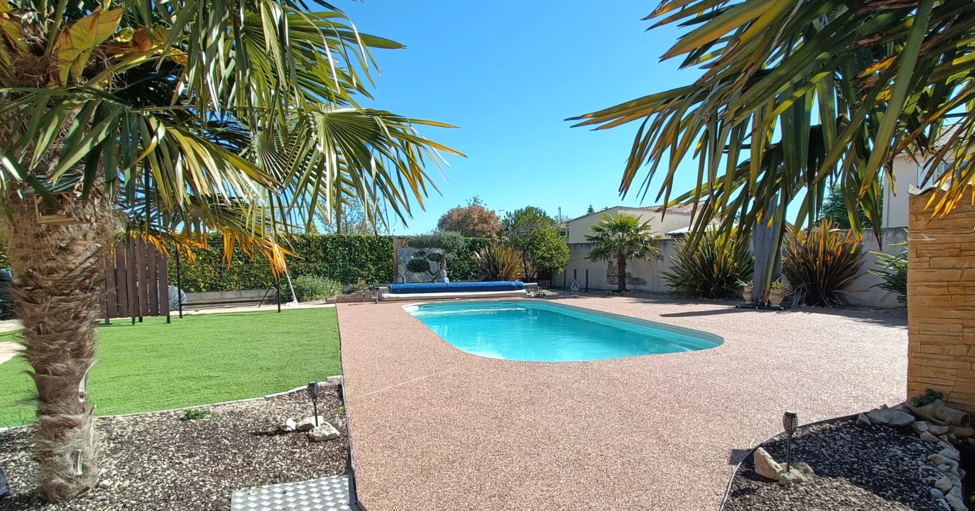 En extérieur : piscine creusée au sel, chauffée et sécurisée. Panneaux photovoltaïques. Terrain clos de 937 m2.