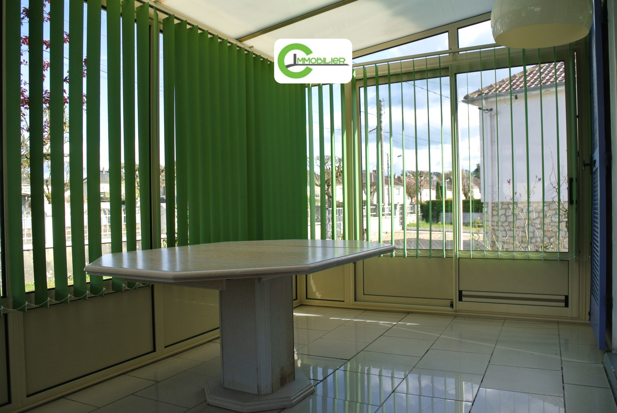 C IMMOBILIER vous propose cette habitation proche du centre ville, accès de plain pied par la véranda. Elle dispose d'une entrée avec placards, une cuisine aménagée, un séjour-salon, trois chambres, une salle d'eau.