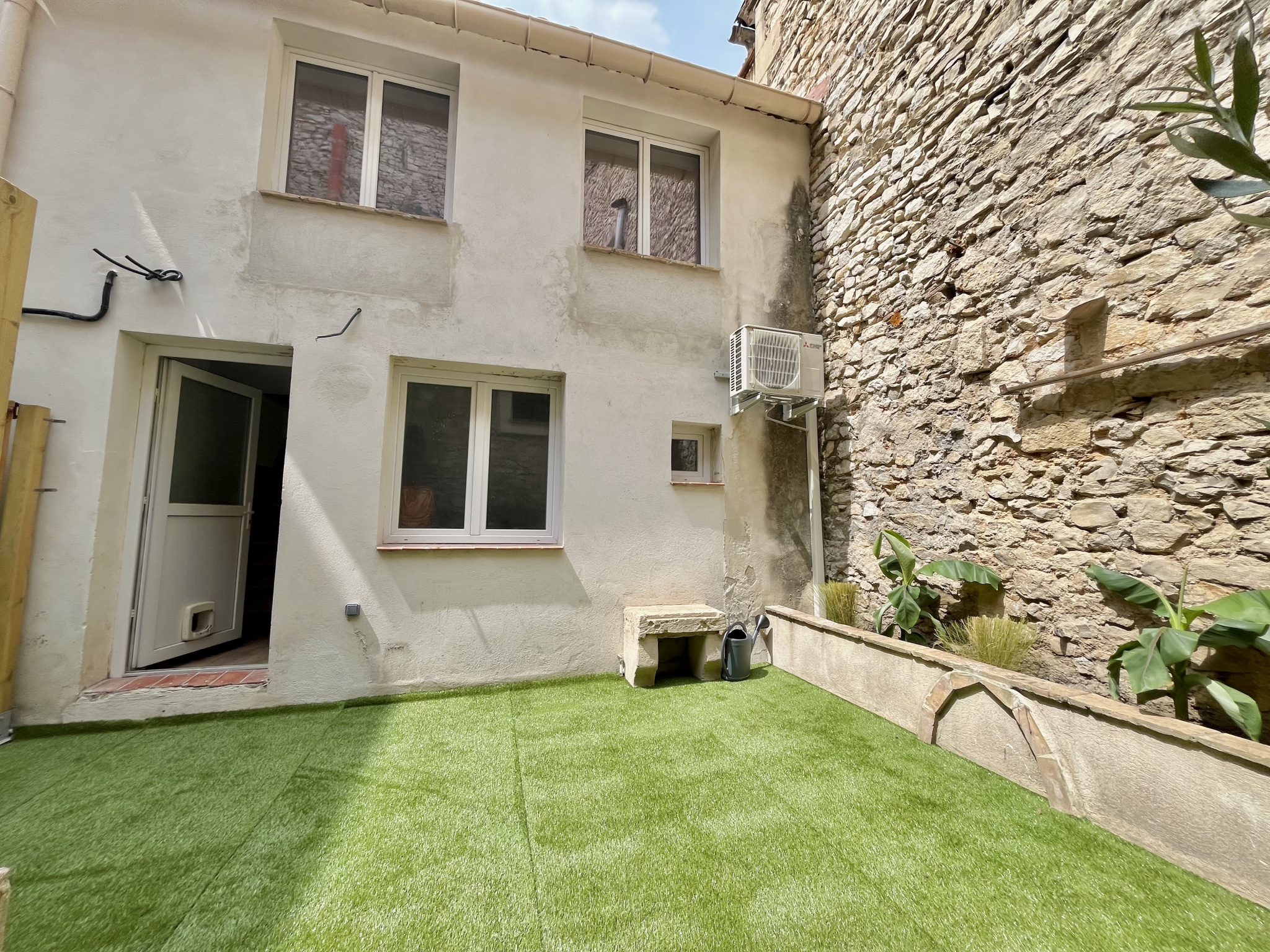 Location Entre Feuchères et Carnot, à deux pas des Arènes, superbe T3 en duplex entièrement rénové (électricité, clim, cuisine, salle d'eau, sols). Comme une petite maison nichée au calme en fond de cour avec son espace extérieur privatif de 19 m2, il offre une belle pièce de vie avec cuisine équipée, et à l'étage deux chambres, et une salle d'eau avec toilette. Un petit cocon urbain à découvrir absolument ! Libre.