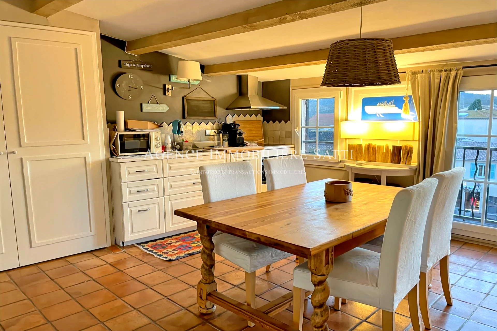 Au dernier étage d'une authentique maison de village située au coeur de Saint-Tropez, cet appartement niché sous les toits et partiellement mansardé offre un séjour lumineux avec cuisine ouverte, une chambre et une salle de bains.