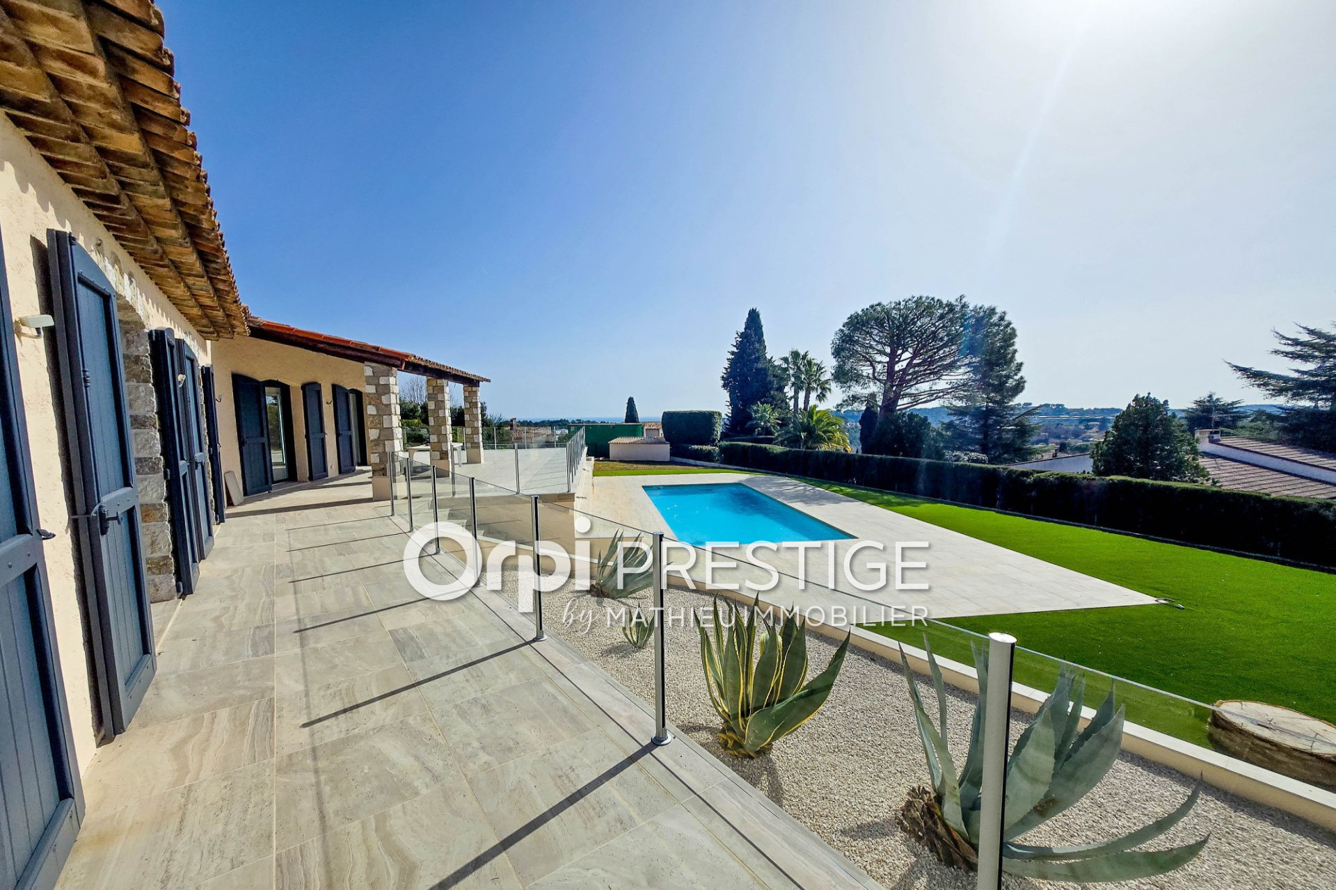 Au coeur des collines de Biot, cette villa de plain-pied de 200 m2 totale avec ses dépendances, entièrement rénovée, offre une vue mer depuis ses terrasses de plus de 80 m, sur un jardin de 2 600 m², dans un environnement calme et ensoleillé toute l'année grâce à son exposition plein Sud. Elle offre également la possibilité d'un agrandissement si vous le souhaitez pour vous offrir une vue encore plus belle.
