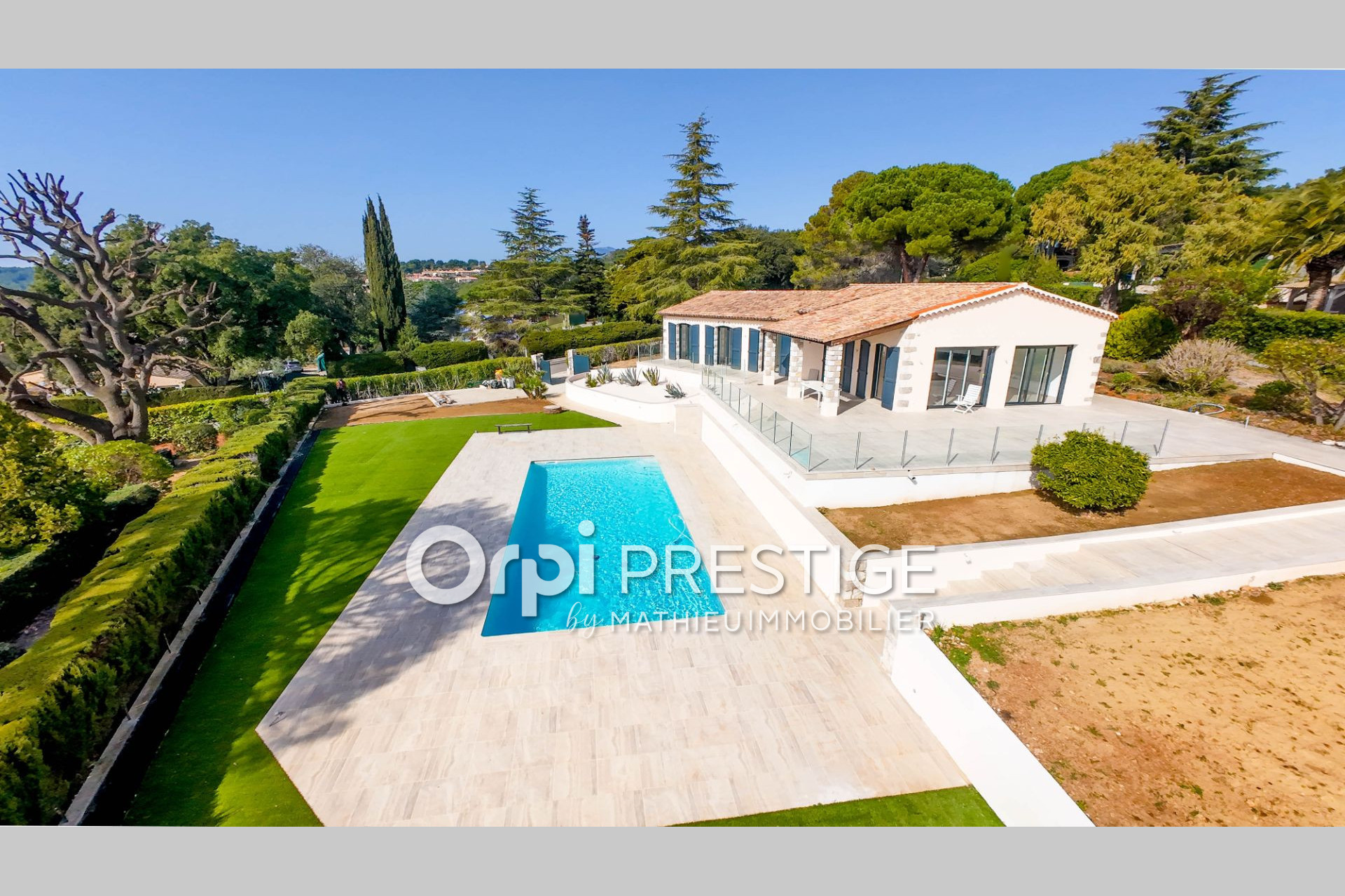 Les extérieurs sont pensés pour la détente : une piscine au coeur d'un jardin méditerranéen de 2 640 m², un arrosage automatique, un portail motorisé et quatre places de stationnement.