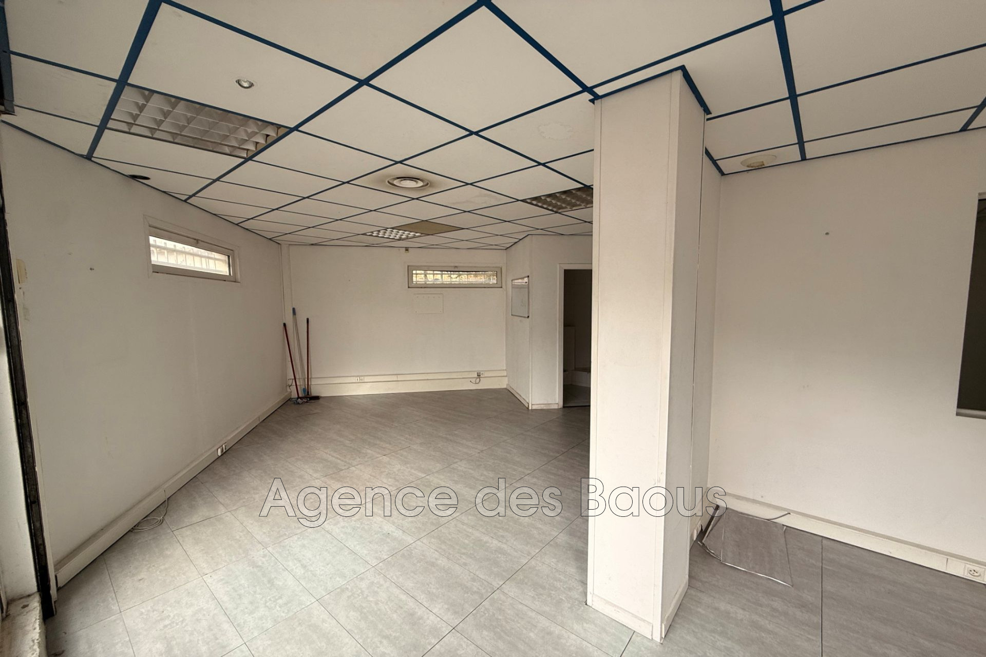 A la Gaude, quartier commerçant, local d'une superficie de 100 m² environ, comprenant deux grandes pièces, des WC et une kitchenette. Climatisation réversible. Un emplacement de parking et un grand garage. Libre immédiatement.