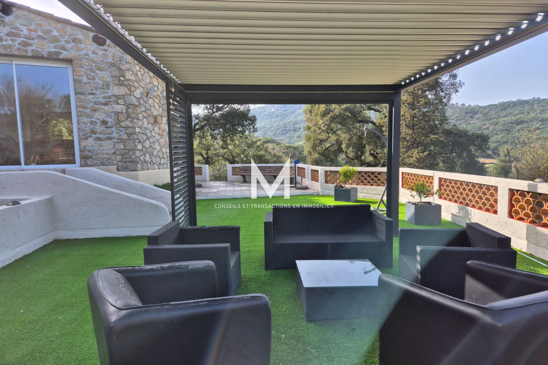 Nouveauté Plan de la Tour. Sur un terrain de 2000 m² maison rénovée et climatisée d'environ 150 m². Elle nous propose une belle cuisine américaine suivie d'un espace repas, salon avec son coin jeu, 3 chambres 1 salle de bains et douches. Un espace extérieur avec abri, Un joli studio indépendant, avec salle de douches et wc, coin cuisine, climatisation.