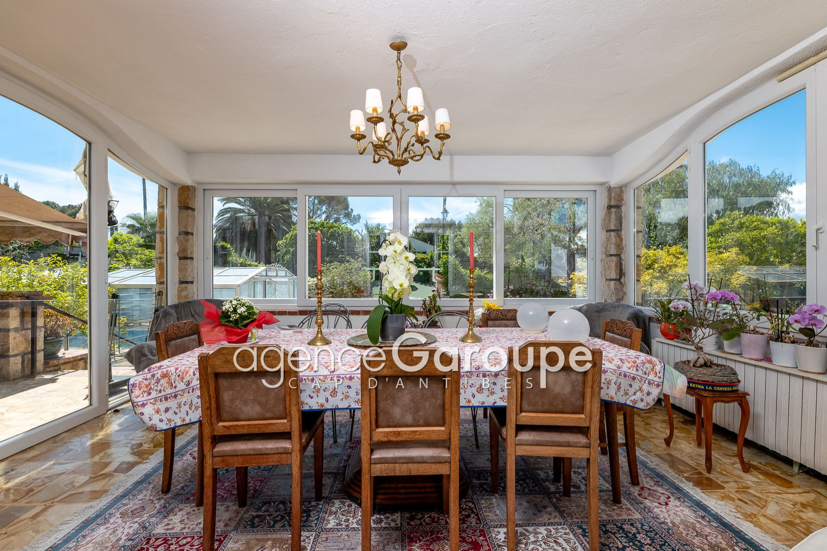 Villa de 165 m² située coté ouest du Cap d'Antibes. Elle se compose d'un hall d'entrée donnant sur un séjour salle à manger avec grande véranda ensoleillé, une cuisine indépendante, trois chambres, une salle de bain, une salle d'eau.