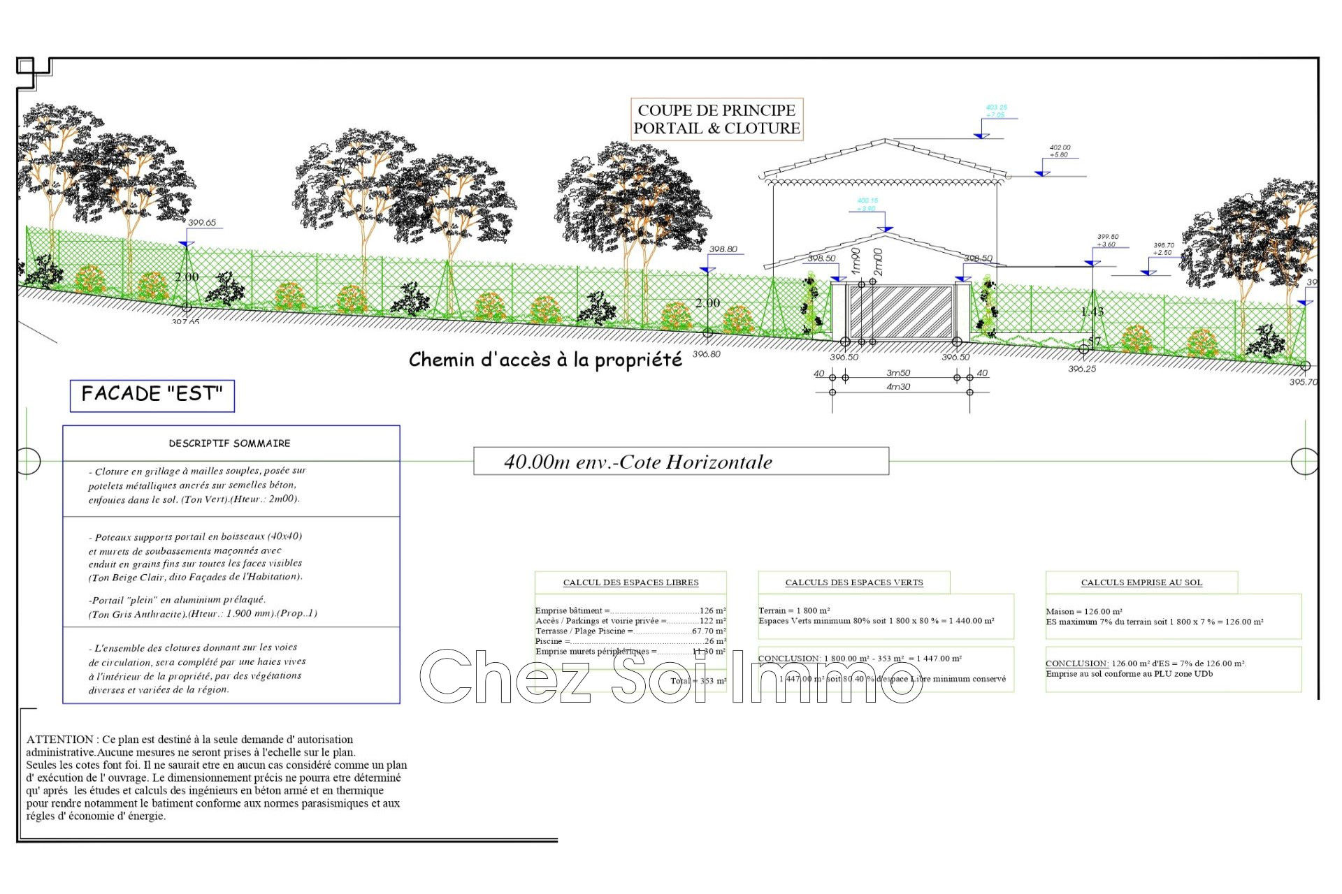 Terrain de 1800 m2 avec permis de construire pour une maison de 126 m2 plus piscine.