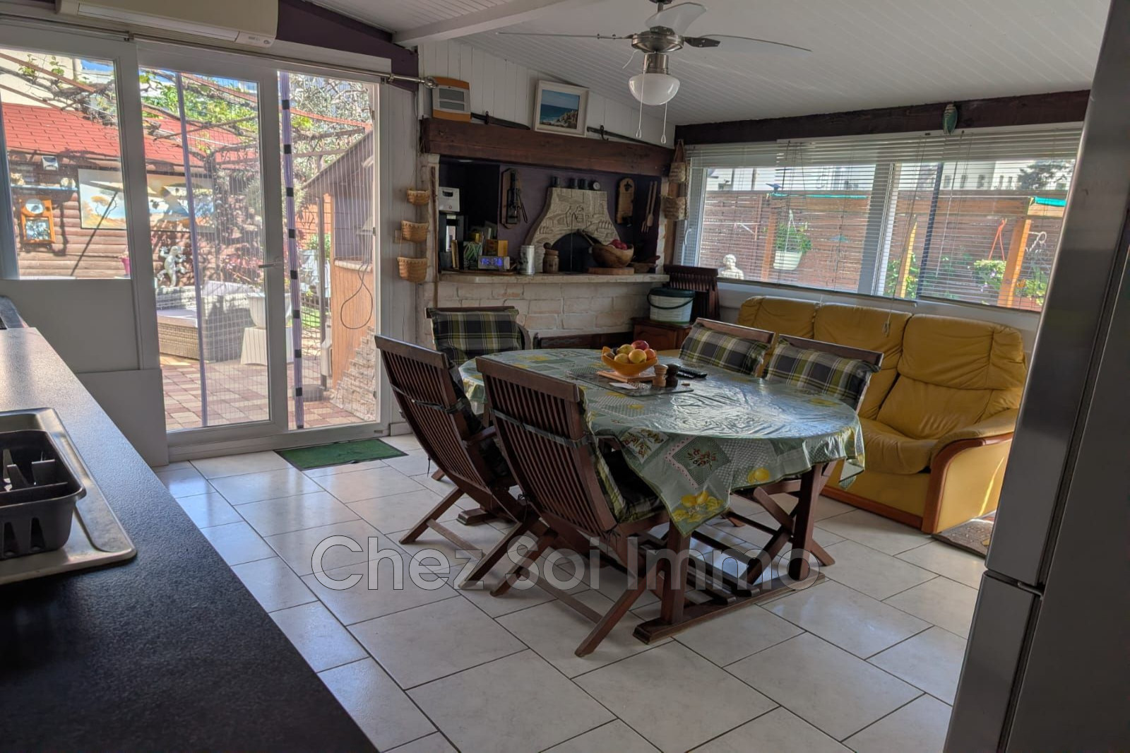 A vendre, Cagnes-sur-Mer, secteur Grand plan, proche hippodrome et plage, jolie villa mitoyenne de plus de 95m² sur terrain de 260m² environ. Cette jolie villa comprend au rez-de-chaussée une belle pièce de vie (séjour salle à manger), une cuisine ouverte et une autre grande cuisine sous véranda isolée avec four à pizza; à l'étage deux chambres une salle de douche et un WC indépendant. Beau terrain au sud. Cabanon de jardin. Parking clôturé deux voitures (voir 3). Pas de charge. La villa serait facilement aménageable en 4 pièces avec une chambre de plain-pied. Proche gare (5mn), hippodrome (5mn), mer (10 mn), tous commerces (5mn) à pied. Contacter Virginie au 06 52 59 60 29.