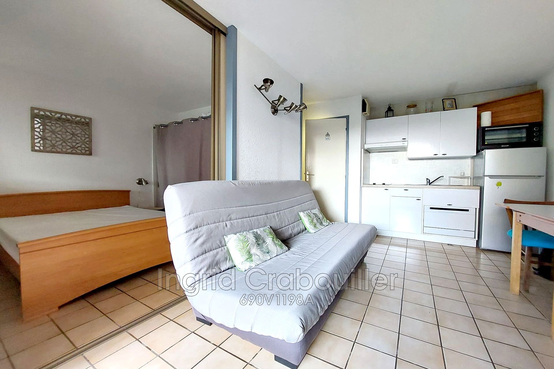 Il dispose d'une chambre avec espace de rangement, d'une pièce de vie avec son coin cuisine équipée, d'une salle d'eau fonctionnelle et de toilettes indépendantes.