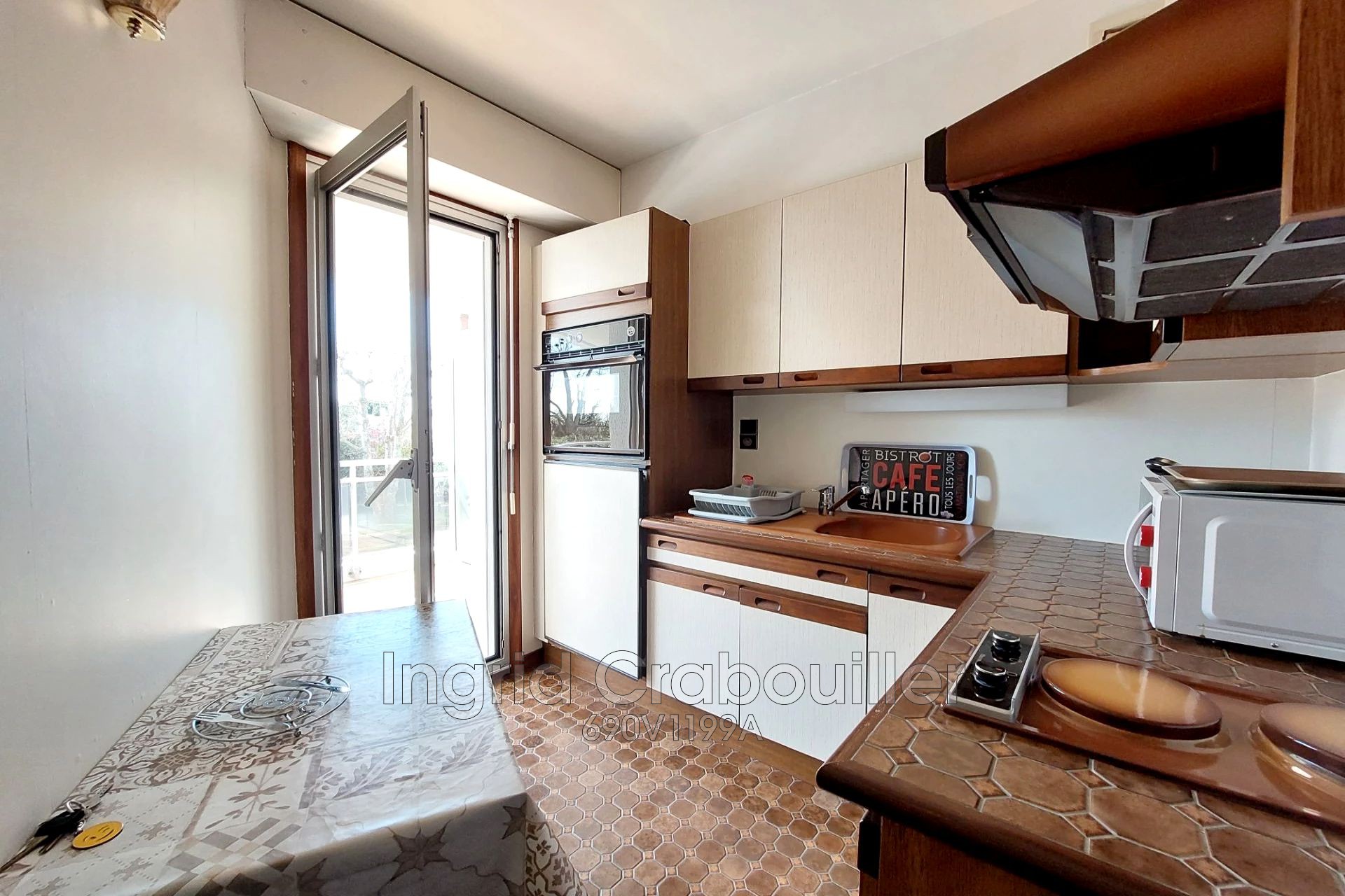 Vous serez accueilli par une entrée comprenant un placard, pour plus d'espace de rangement. menant à une pièce de vie lumineuse, à la cuisine indépendante équipée et à une salle de bain avec toilettes. Vous pourrez apprécier que l'ensemble donne sur la terrasse.