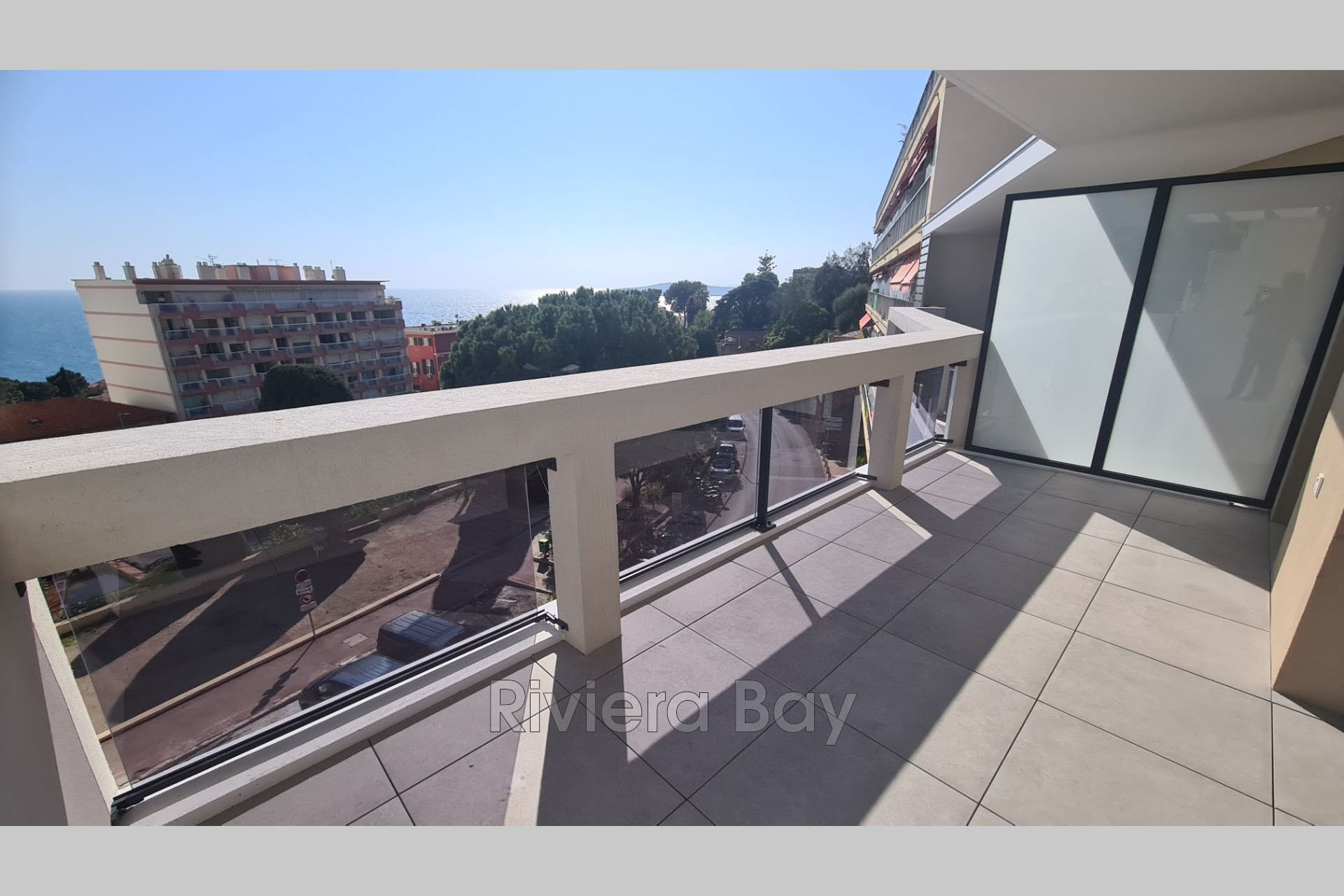 Situé au dernier étage, exposé sud, 3 pièces très lumineux, avec des ouvertures extra-larges sur terrasse profonde face à la mer et les collines.