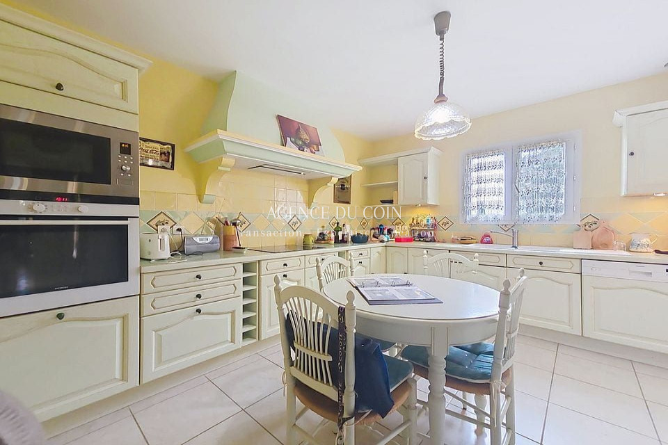 Très belle opportunité d'achat, située dans un quartier calme, résidentiel et recherché de Draguignan ou vous pourrez communiquer avec la nature grâce à un accès direct vers des espaces boisés et sauvegardés des constructions. Cette charmante villa individuelle de plain-pied offre une surface de 133 m² et est assise sur un beau terrain de 1500 m² exposé plein sud avec une vue dégagée sur les massifs alentours. Cette charmante et très belle maison vous offre un séjour spacieux et lumineux de 40 m², une cuisine indépendante aménagée, trois chambres bien dimensionnées, une salle de bain, une salle de douche et deux toilettes indépendants.