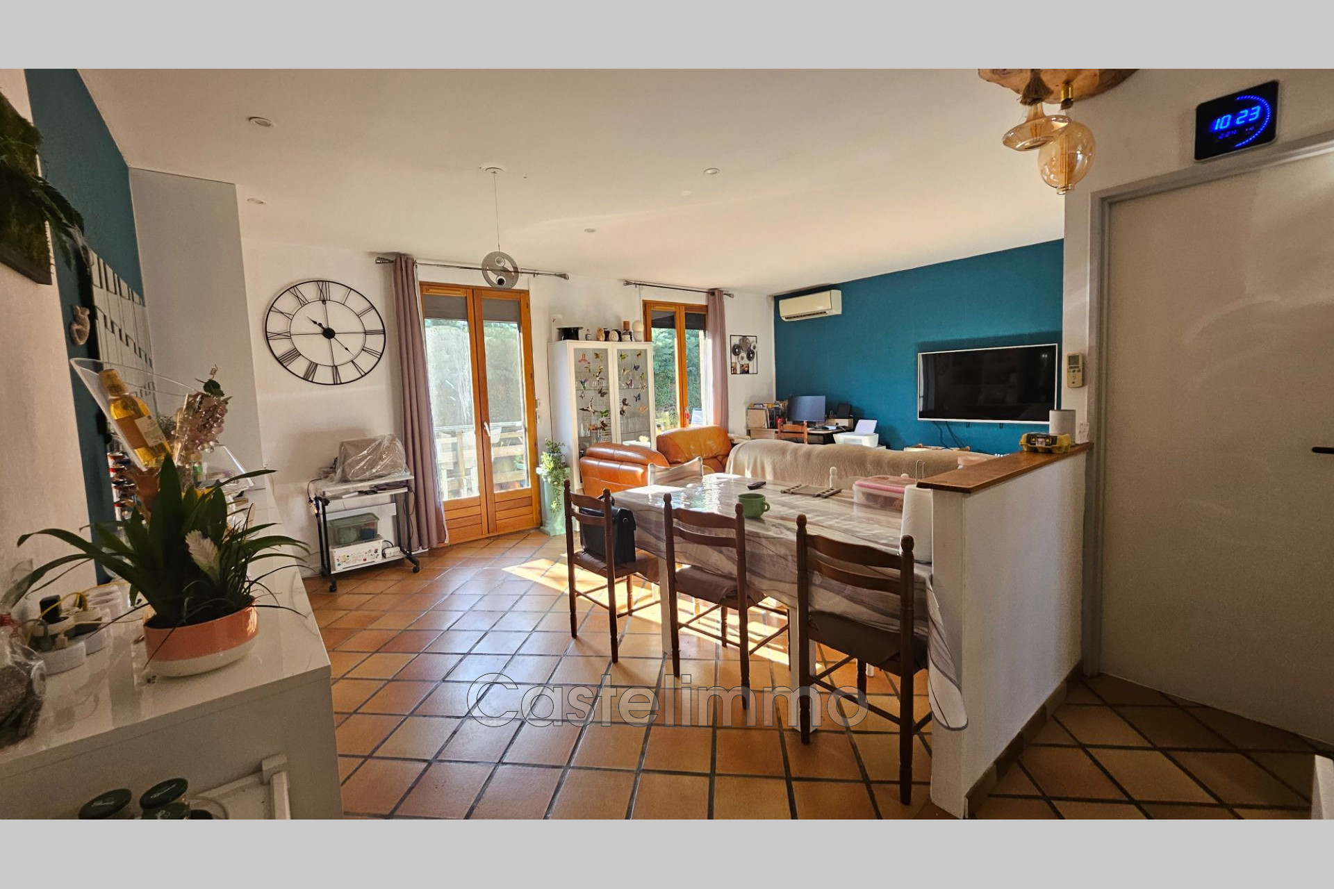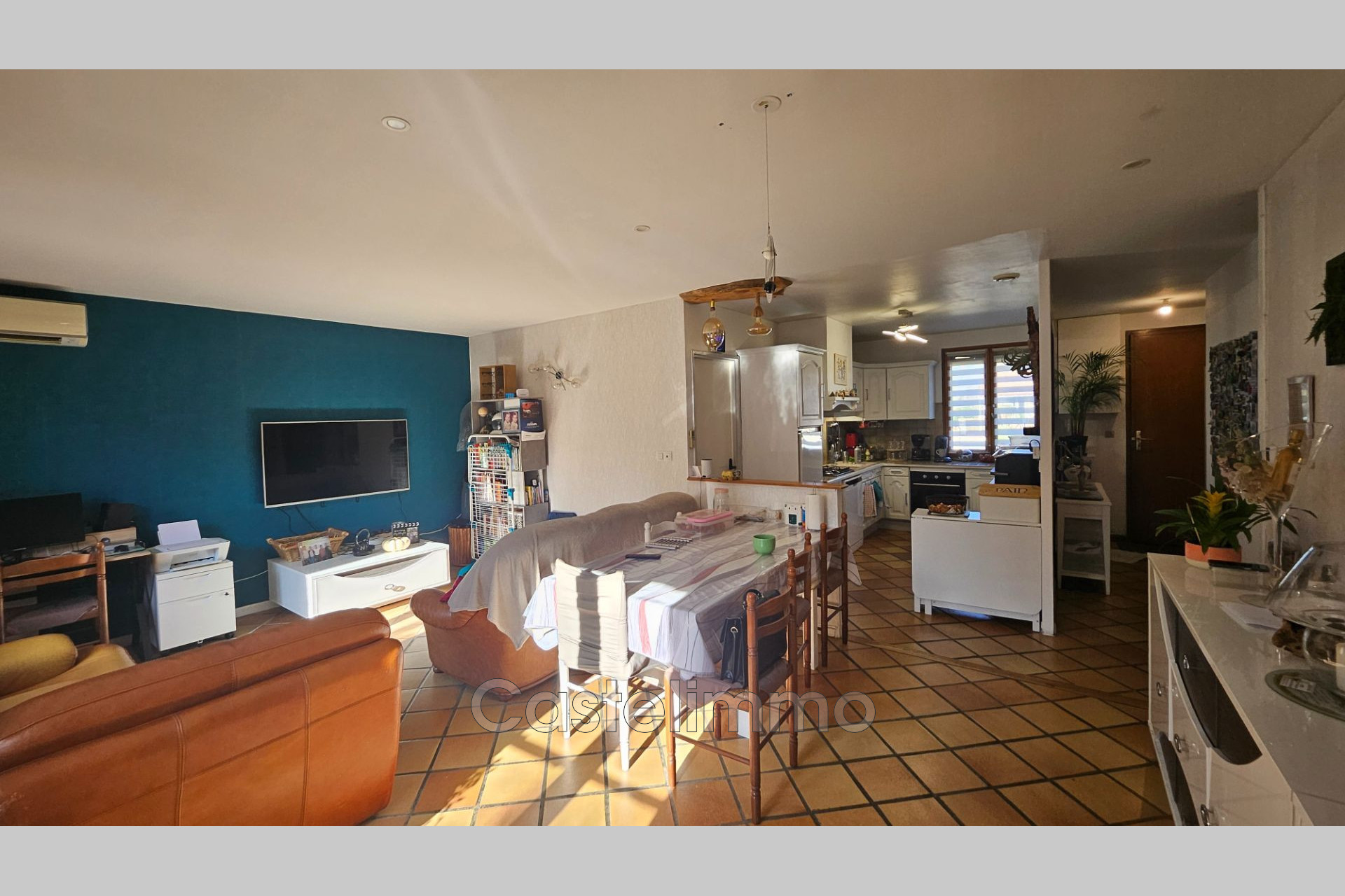 Il comprend pour 71m² habitables, une entrée, ouvrant sur la pièce de vie de 23.50m² donnant sur la terrasse, une cuisine équipée, (four, plaque gaz, hotte, lave-vaisselles, réfrigérateur), deux chambres, un bureau, SDE double vasques, WC avec placard, garage. Climatisation dans le séjour et une chambre, volets électriques.
