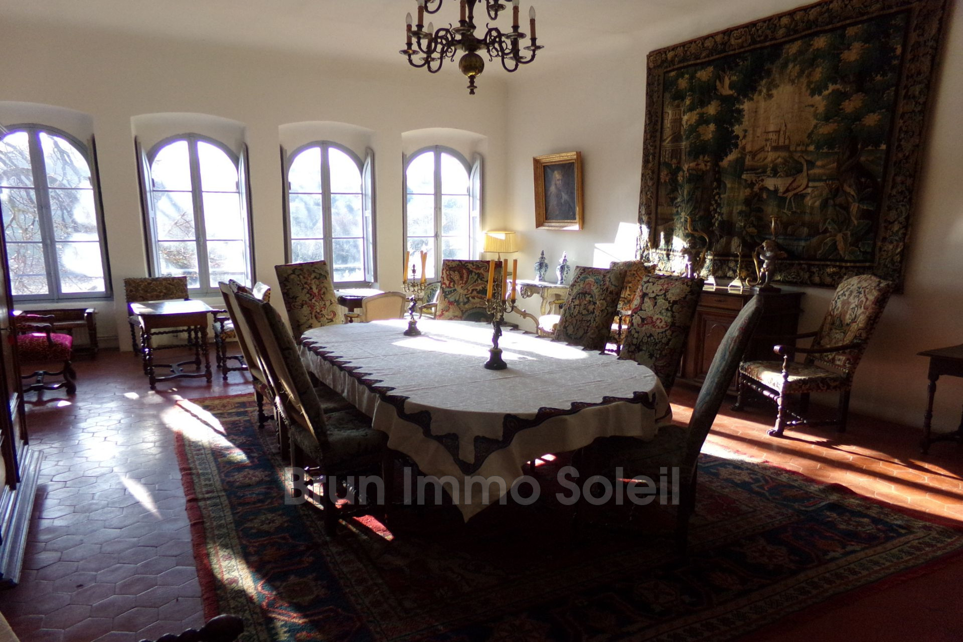 indépendant, loué aussi à l'année avec garantie. Enfin, une maisonnette de caractère de 63 m².louée en tant que meublé de tourisme. 145 m² d'anciennes écuries de toute beauté, avec bassin.intérieur, restent à réhabiliter. L'ensemble couvre une superficie de 1048 m² de planchers.dont 903 m² restaurés. Des douves, éclairées la nuit, constituées de douze bassins voûtés en enfilade, soulignent le caractère prestigieux de la propriété. Alimentées par le trop-plein de la fontaine publique qui date du moyen âge, ces douves offrent un volume d'eau unique, à disposition permanente. Dans la cour du château, ou dans le jardin à la française avec ses buis taillés et ses rosiers, cette propriété, aux multiples facettes, vous séduira par tout son charme et ses nombreuses possibilités. L'histoire de ce château se rapporte.L'histoire de ce château se rapporte aux familles de Villeneuve et Bonaparte. Rentabilité assurée