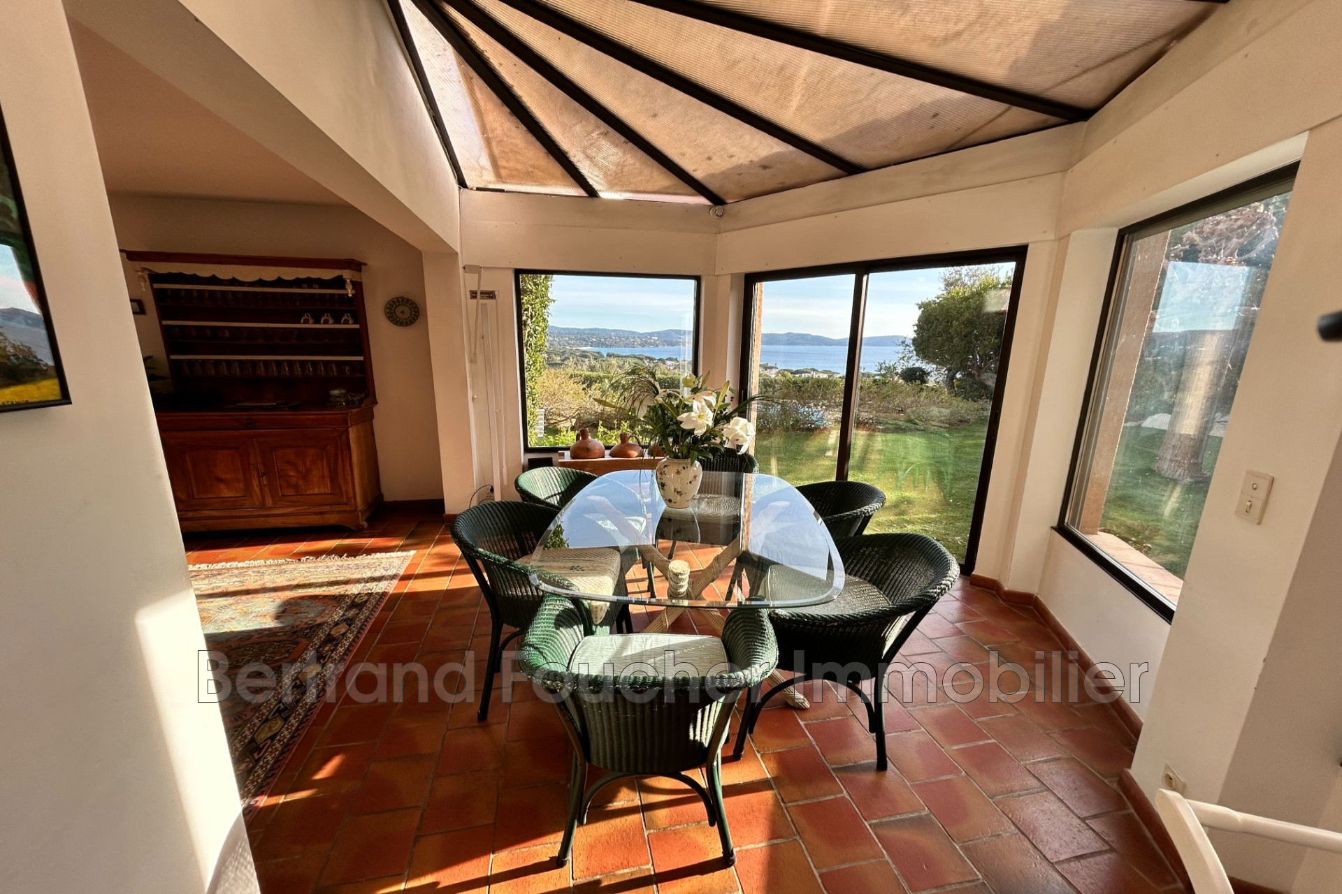L'espace extérieur comprend notamment une piscine au sel avec plage en pierre, une terrasse couverte (15?m²), un toit-terrasse (7?m²), un solarium (11?m²), un garage indépendant (21?m²), un abri de jardin (12?m²) et un jardin paysagé dominant la baie de Cavalaire.