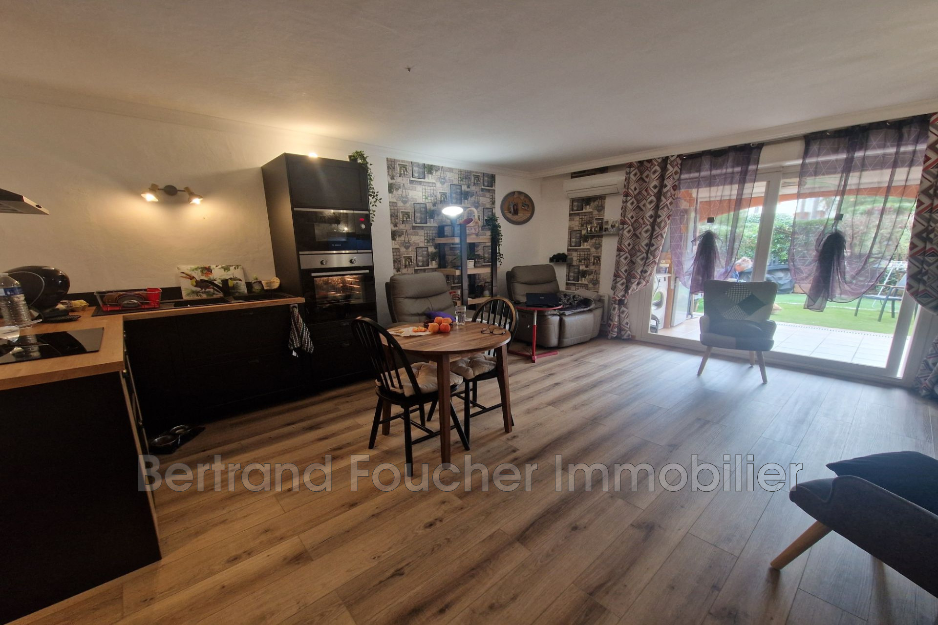 REZ DE JARDIN - BERTRAND FOUCHER IMMOBILIER vous propose de découvrir au coeur d'une résidence de standing arborée avec deux piscines et deux cours de tennis. Ce charmant trois pièces en rez de jardin entièrement rénové en 2025, bénéficiant d'un ensoleillement maximum est composé d'une entrée, un séjour avec cuisine ouverte équipée donnant sur le jardin, deux chambres, une salle de bain et un wc.