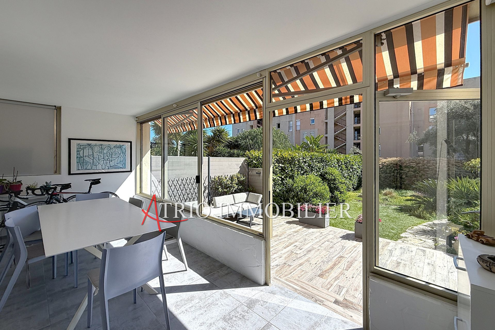 Dans une jolie résidence, à deux pas des commodités, superbe appartement de type 2 Pièces de 55 m² donnant sur une véranda de 17 m² et une terrasse / jardin de 130 m² !