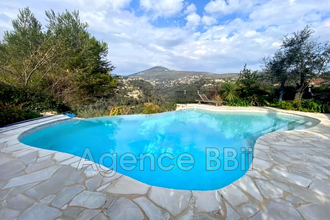 Maison sur 3 niveaux de 216m² sur un terrain en restanque de 1622m² dans un quartier calme et résidentiel sur les hauteurs de Saint Pancrace avec une vue dégagée sur les collines de l'arrière-pays niçois proche des commodités des écoles et du bus