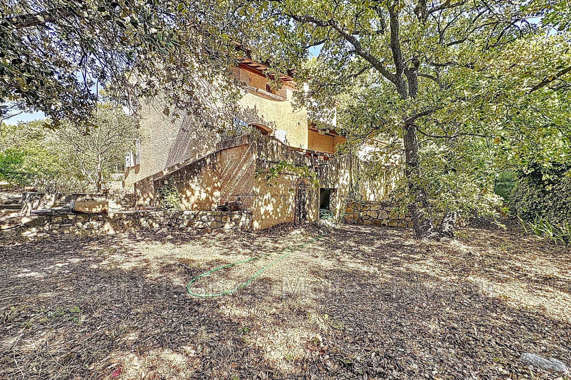 Puyloubier - Votre agence vous présente cette maison traditionnelle de type 4 d'environ 100m² + un appartement t2 indépendant de 40m² sur une parcelle de terrain clos et arboré de plus de 1000m². Construite au début des années 90, elle se compose au rez-de-chaussée d'une entrée, une cuisine avec plan de travail en pierre donnant sur un séjour de 36m² avec magnifique cheminée ouverte. A l'étage, vous trouverez deux chambres d'environ 10m², un wc, une salle de bains avec baignoire et douche, et une chambre avec dressing de 15m² avec accès à un balcon. L'ensemble est à rafraichir mais reste habitable en l'état. Également attenant à la maison, et avec la possibilité de le raccorder à l'habitation principale, se trouve un appartement t2 d'environ 40m² à rénover, composé d'un séjour, une cuisine, une chambre et une salle d'eau avec wc. Attention, cette partie de la construction contient des fissures structurelles sur un angle du bâti. Elles sont apparues il y a plusieurs années et n'ont pas évoluées. Enfin, vous apprécierez le calme qu'offre l'environnement de cette parcelle en bordure de zone agricole, et l'ombre des chênes présents sur la totalité du terrain.