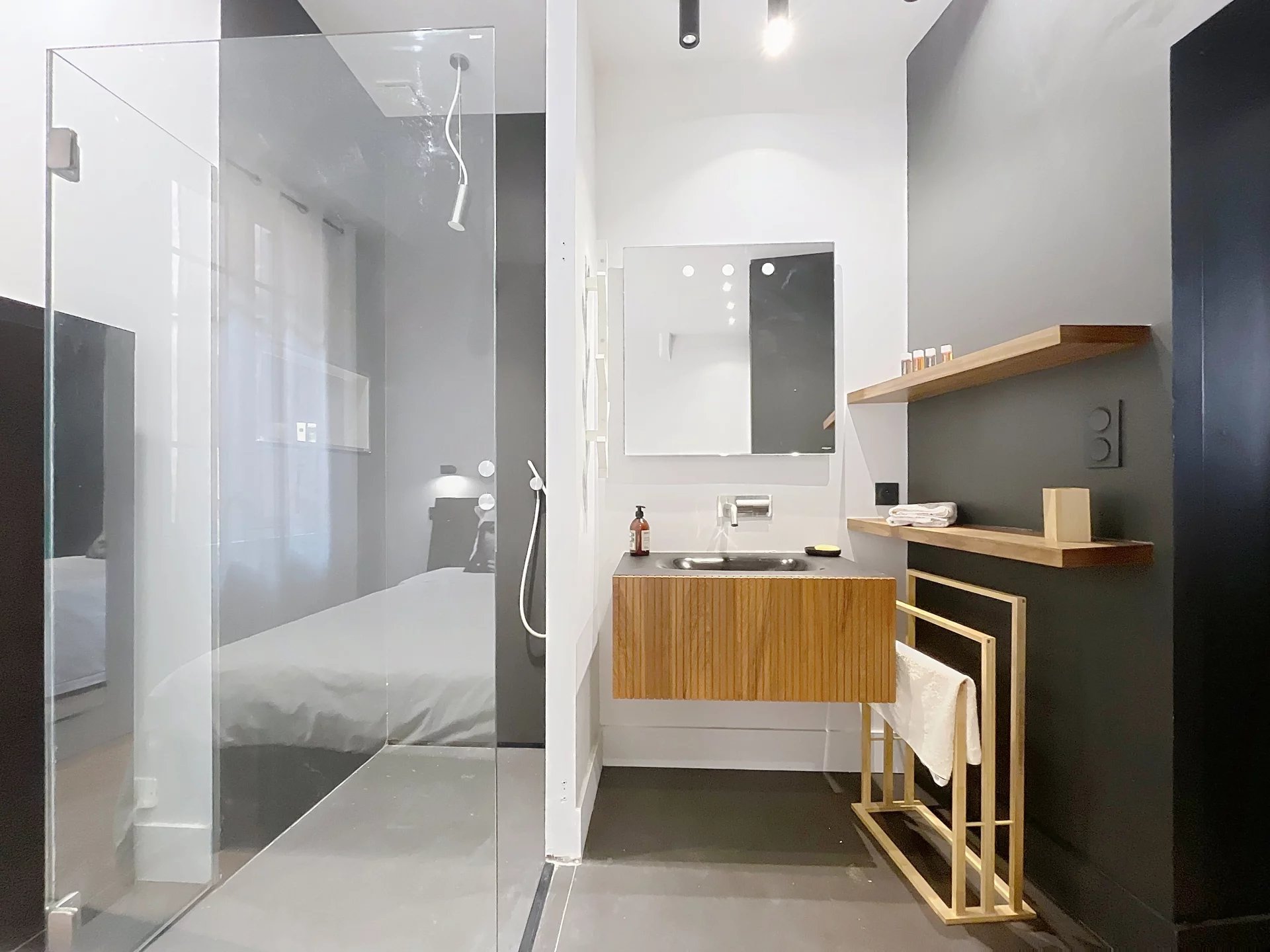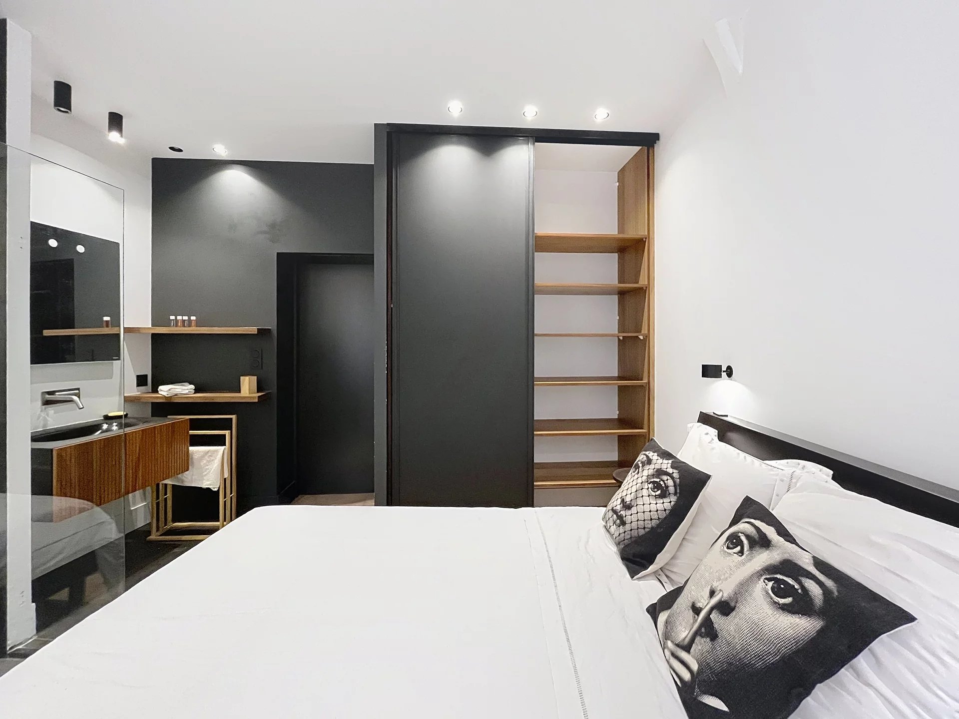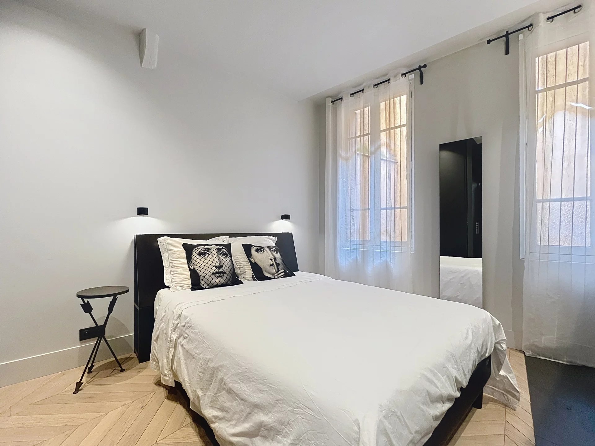 L’appartement se compose d’une pièce de vie lumineuse avec une cuisine entièrement équipée, d’une chambre avec salle d’eau attenante, ainsi que de WC séparés.