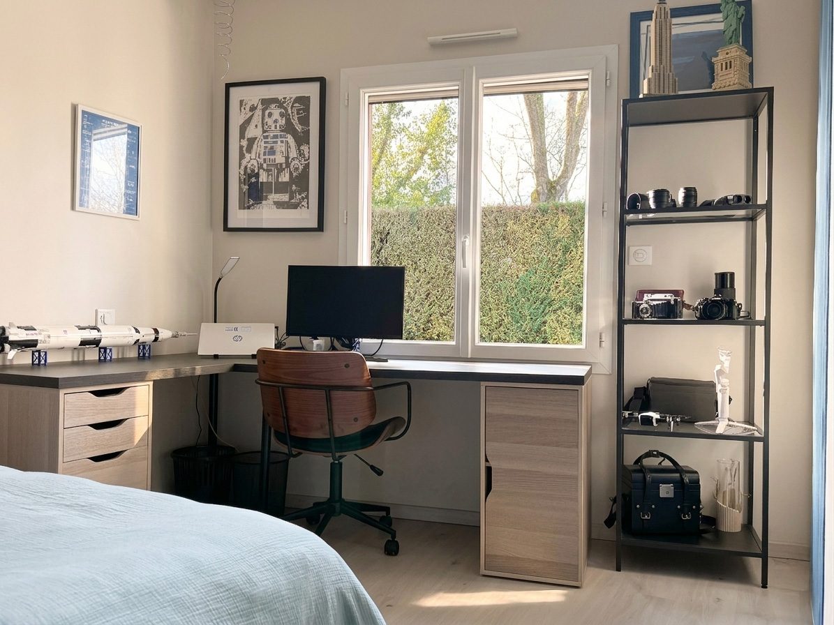Dès l'entrée, des rangements intégrés accueillent vos affaires du quotidien. À gauche, un bureau indépendant de plus de 9 m² avec fenêtre offre un espace de travail au calme, pouvant aisément faire office de chambre d'appoint si besoin.