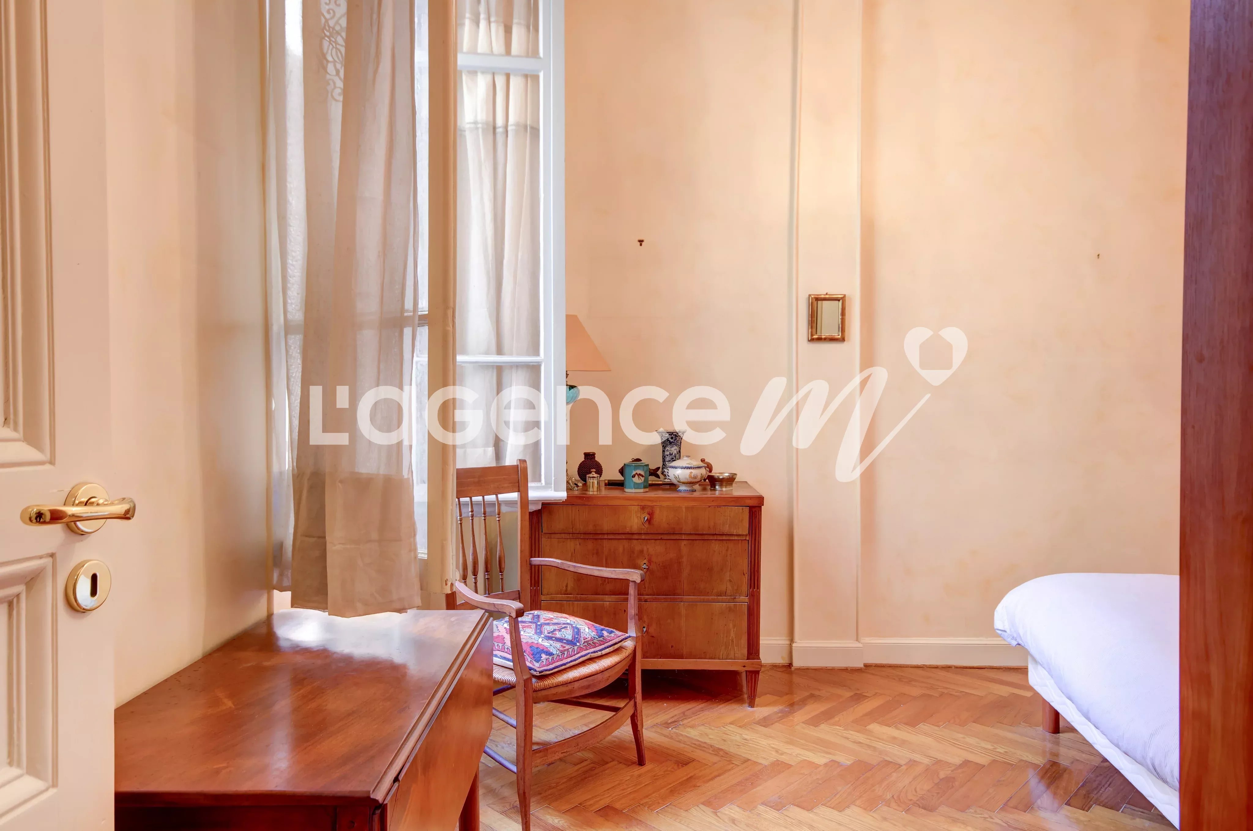 Nel centro di Nizza, a pochi passi da tutte le comodità, si trova questo raffinato appartamento di 88,5 m². L'ampio soggiorno, impreziosito da soffitti decorati e una splendida luce naturale, offre uno spazio conviviale perfetto per ricevere ospiti o rilassarsi davanti al camino. Il pavimento in parquet e i dettagli d'epoca donano fascino e raffinatezza all'ambiente. L'appartamento dispone di quattro locali ben distribuiti, tra cui due spaziose camere da letto silenziose, ideali per il riposo e la privacy. La zona pranzo si affaccia su grandi finestre che si aprono su affascinanti balconcini tipici della città, creando un'atmosfera calda e accogliente. Completano la proprietà moderne comodità come l'accesso a internet e un pratico citofono. Questa soluzione è perfetta per chi desidera vivere nel comfort di una residenza elegante al centro di Nizza, mantenendo un'atmosfera intima e riservata.