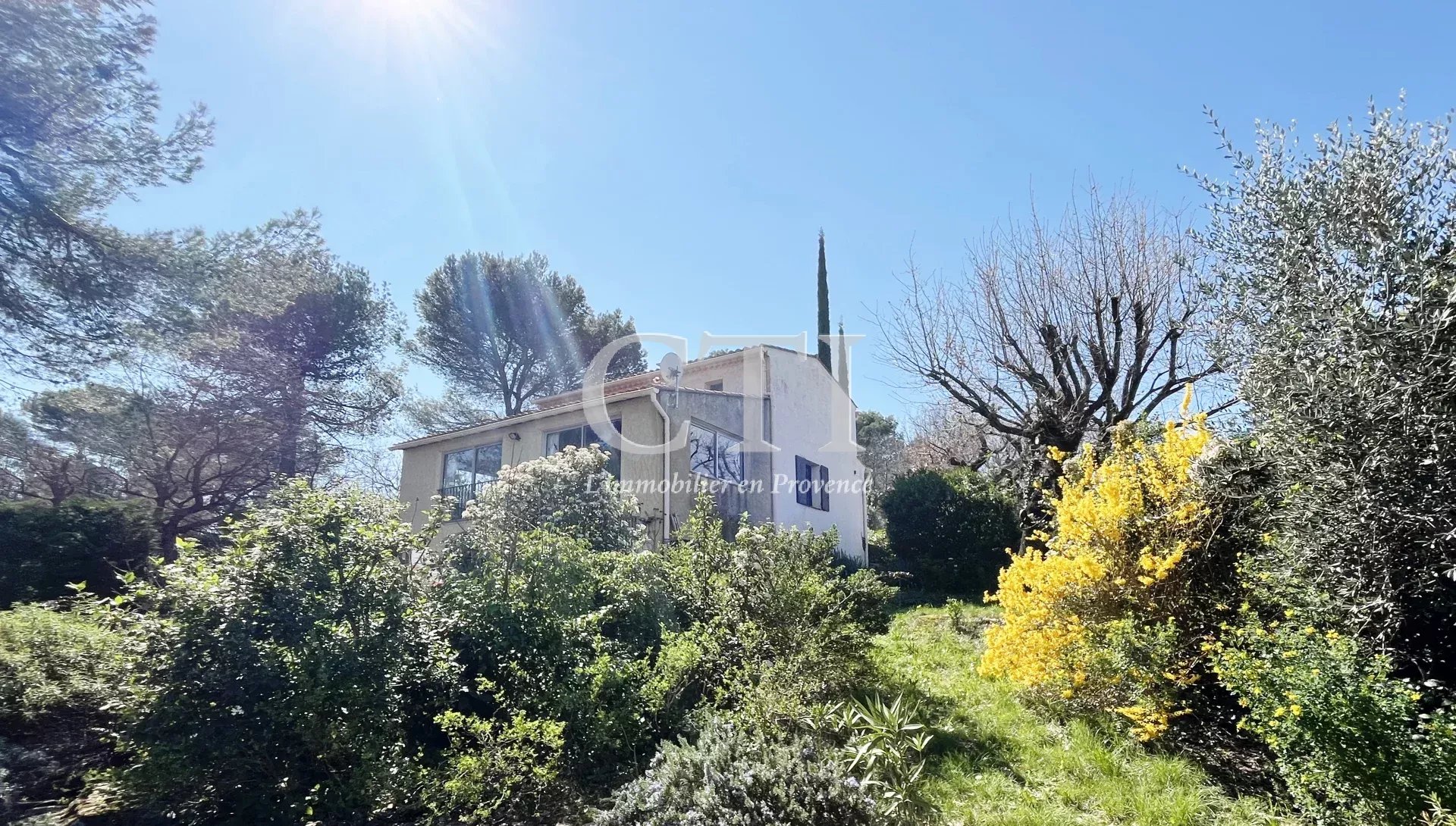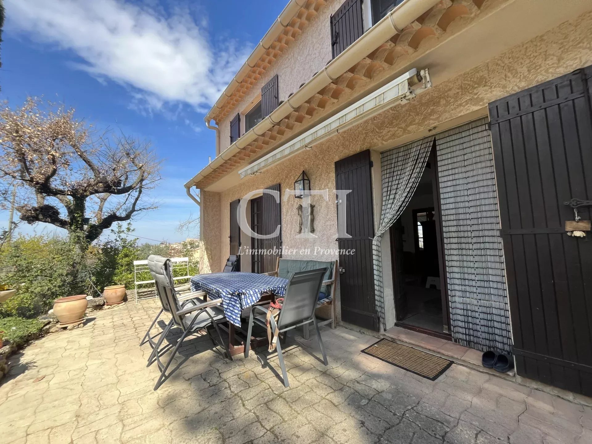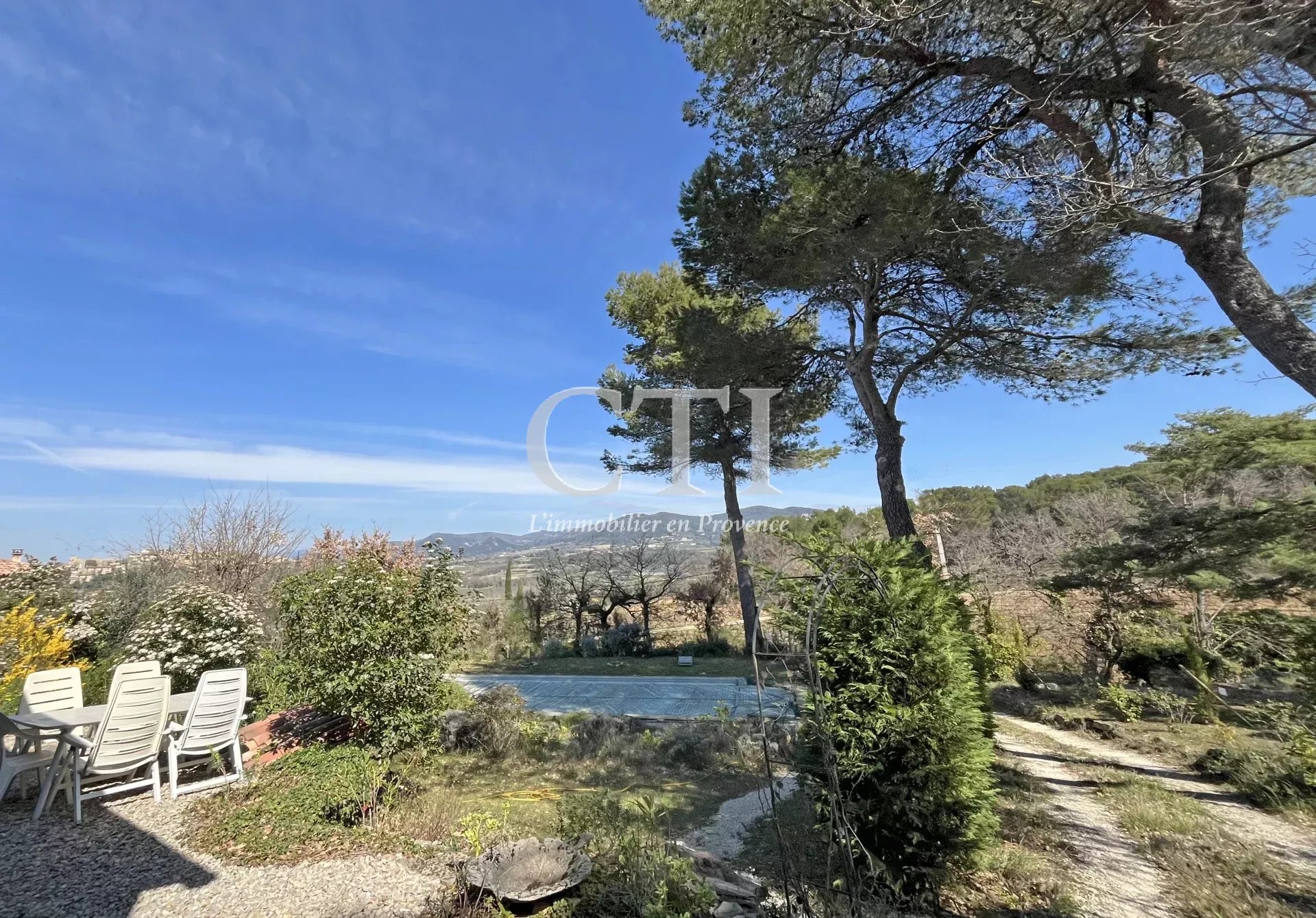 Exclusivité - Située à flanc de colline avec une très jolie vue sur les collines et villages environnants, cette charmante villa est implantée sur un terrain de 1504m² arboré et dotée d'un espace piscine.